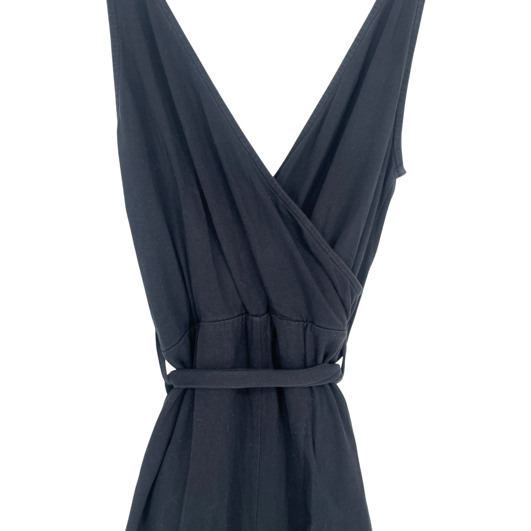 Kaiko women's sleeveless wrap style jumpsuit with a detachable belt.