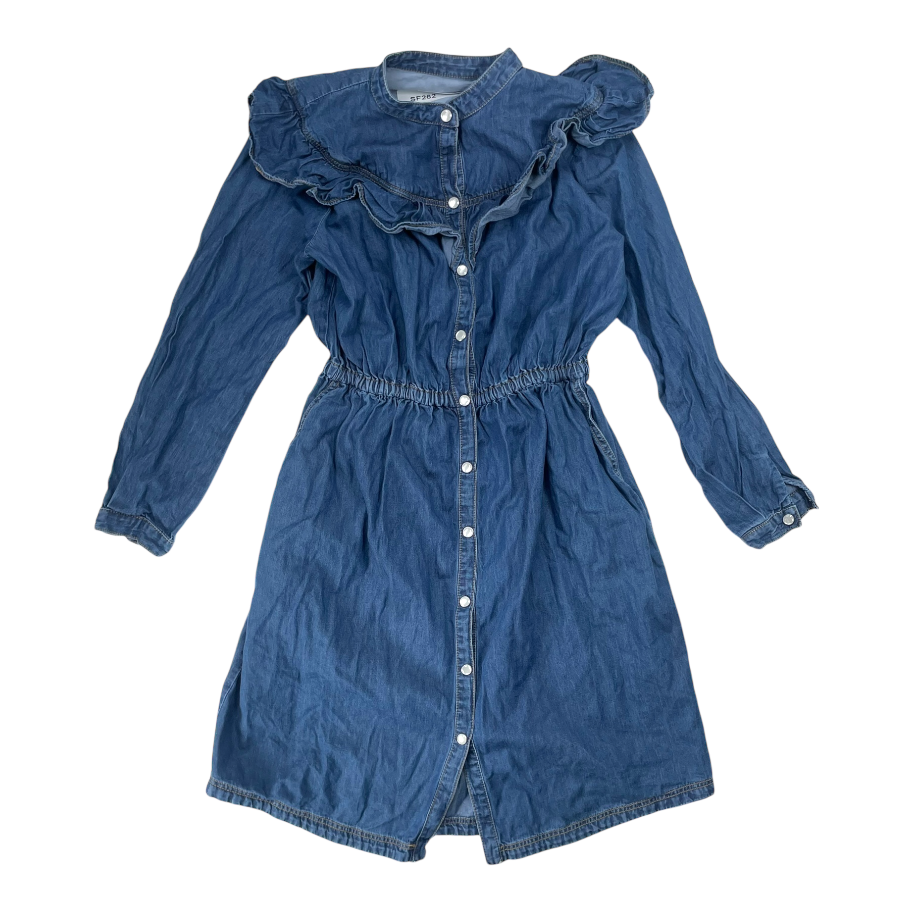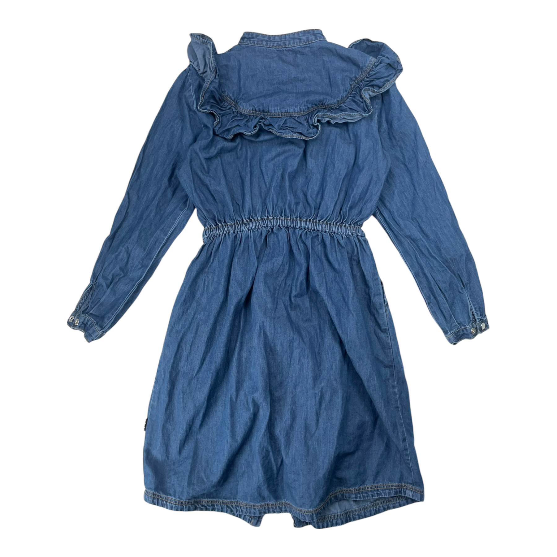 Molo Clarissa denim dress with frill details and pockets on the sides.