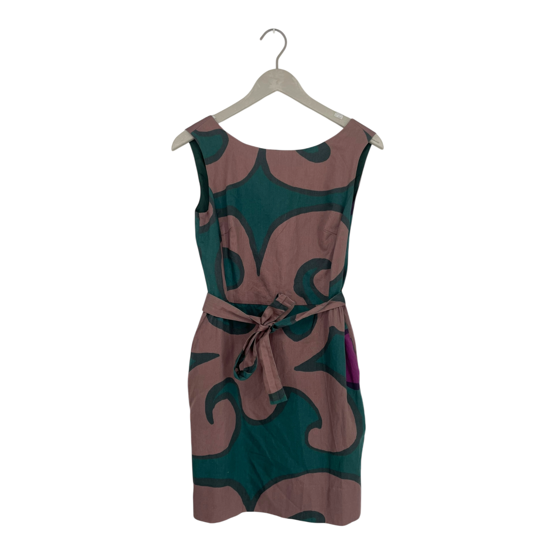 Marimekko sleeveless dress in Keidas print with pockets on the sides, a belt and a zipper back.