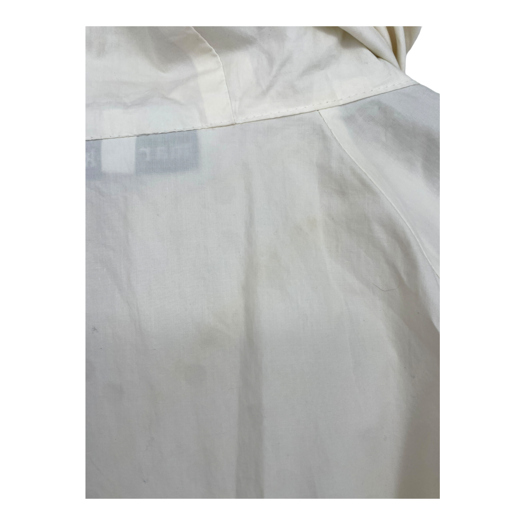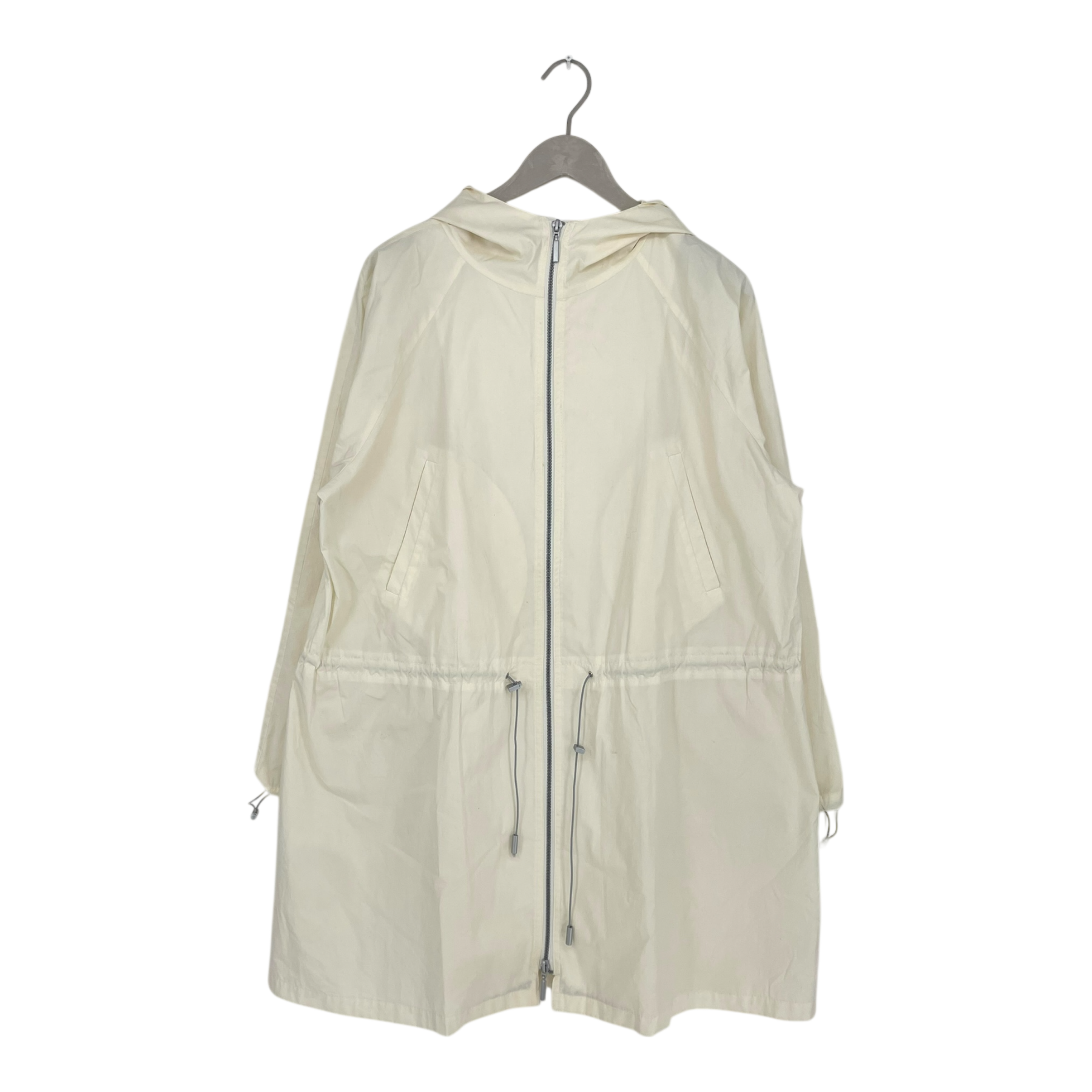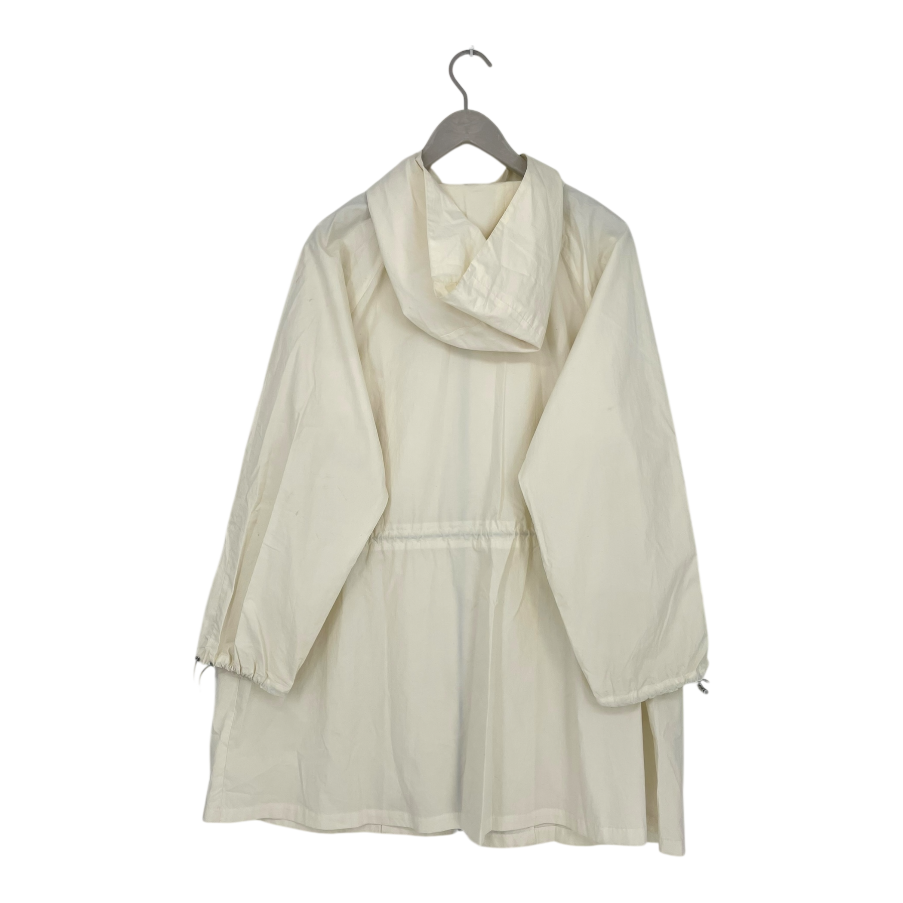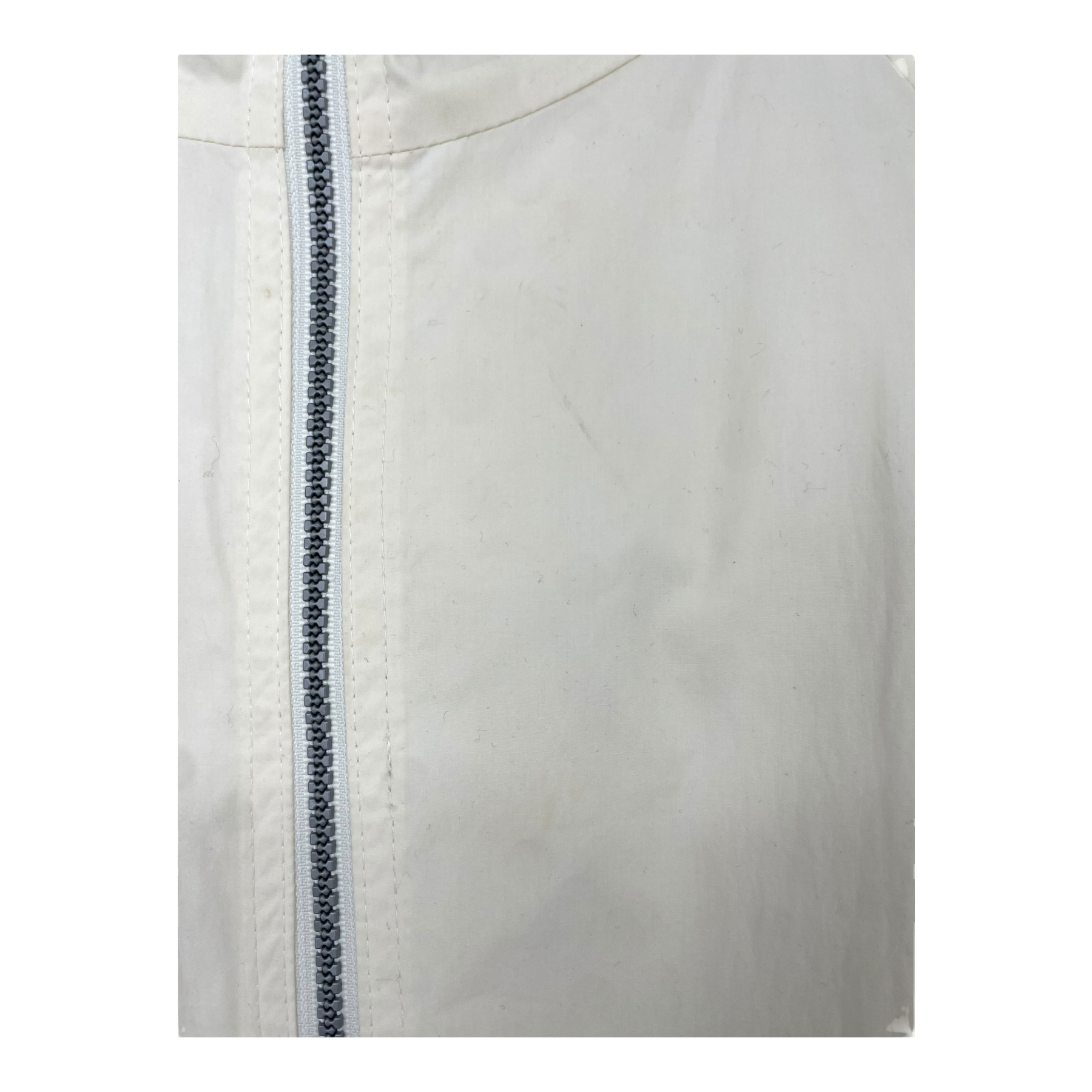 Marimekko vintage windbreaker with a hood, zipper closure and pull fasteners on the waist. The item has multiple light stains as shown in the pictures but is otherwise in very good condition. The item was originally wind and water resistant but those properties may have weakened through time.