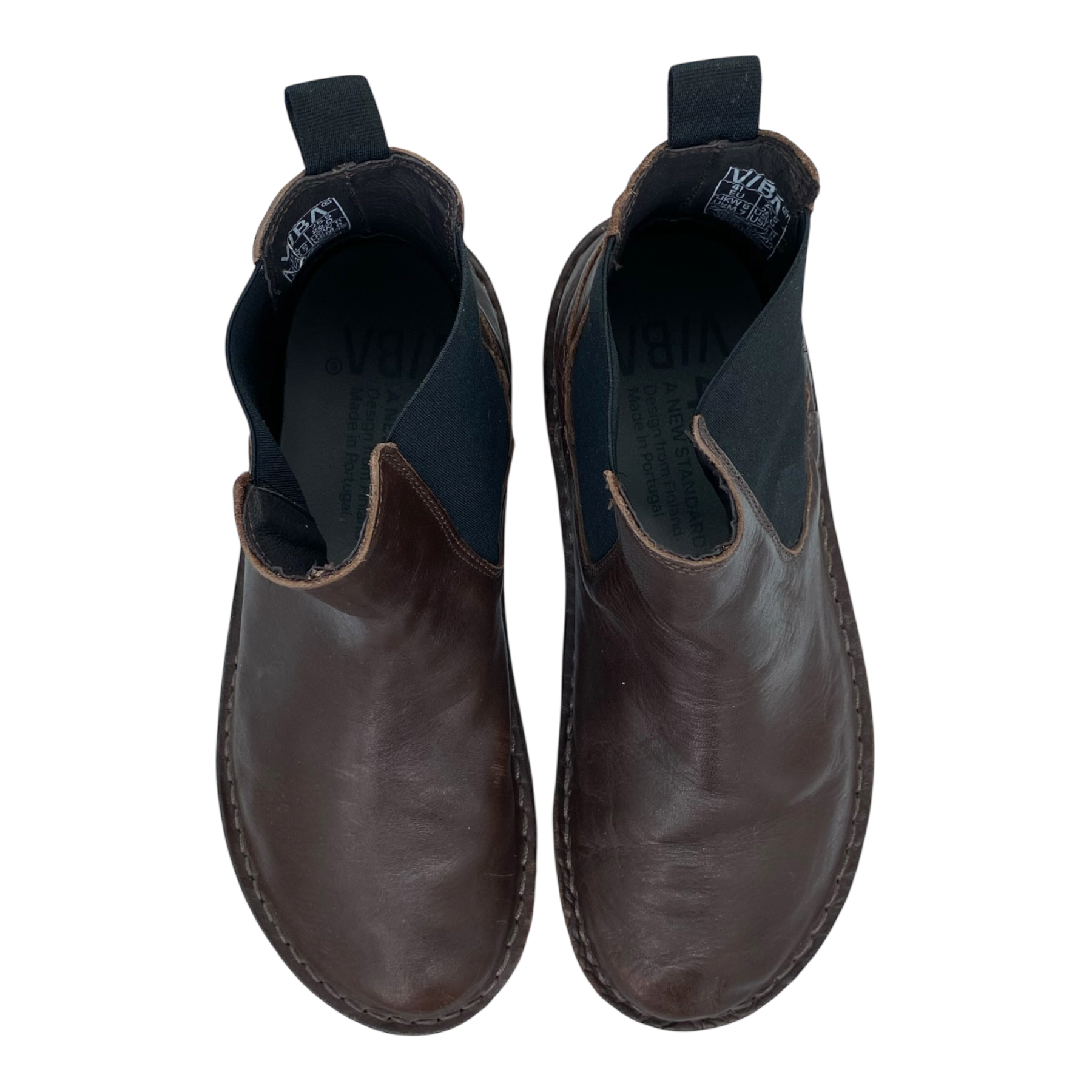 VIBAe Helsinki leather boots. The HELSINKI boot from VIBAe is made from premium vegetable-tanned leather. These year-around unisex boots are made from soft leather and come with a leather pull and large elastic gore on either side.