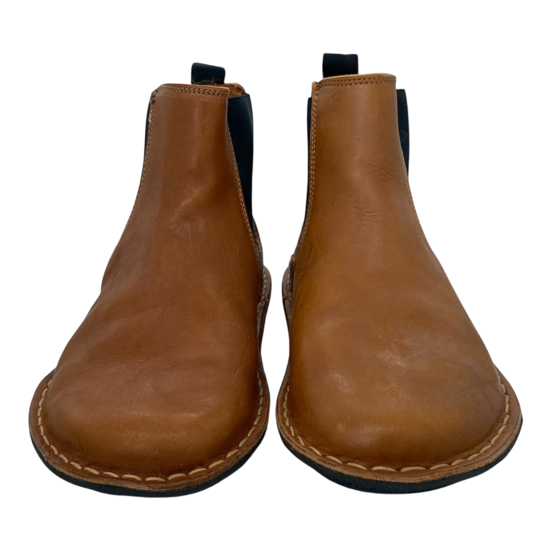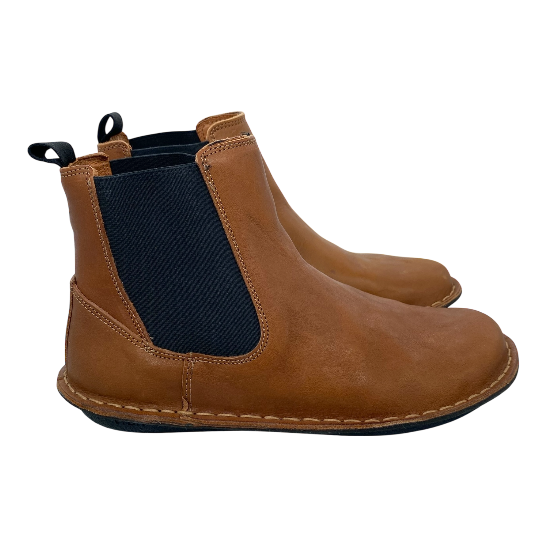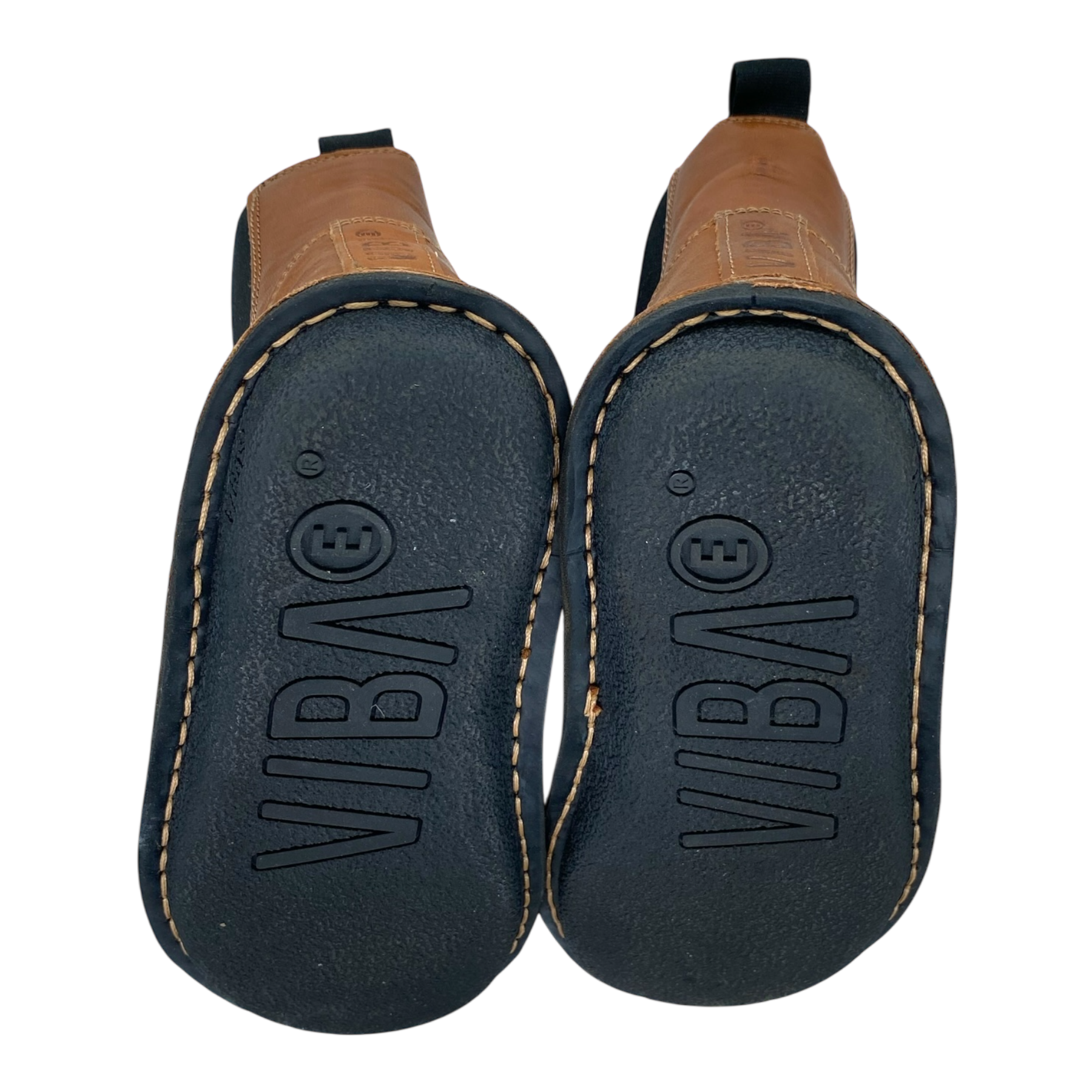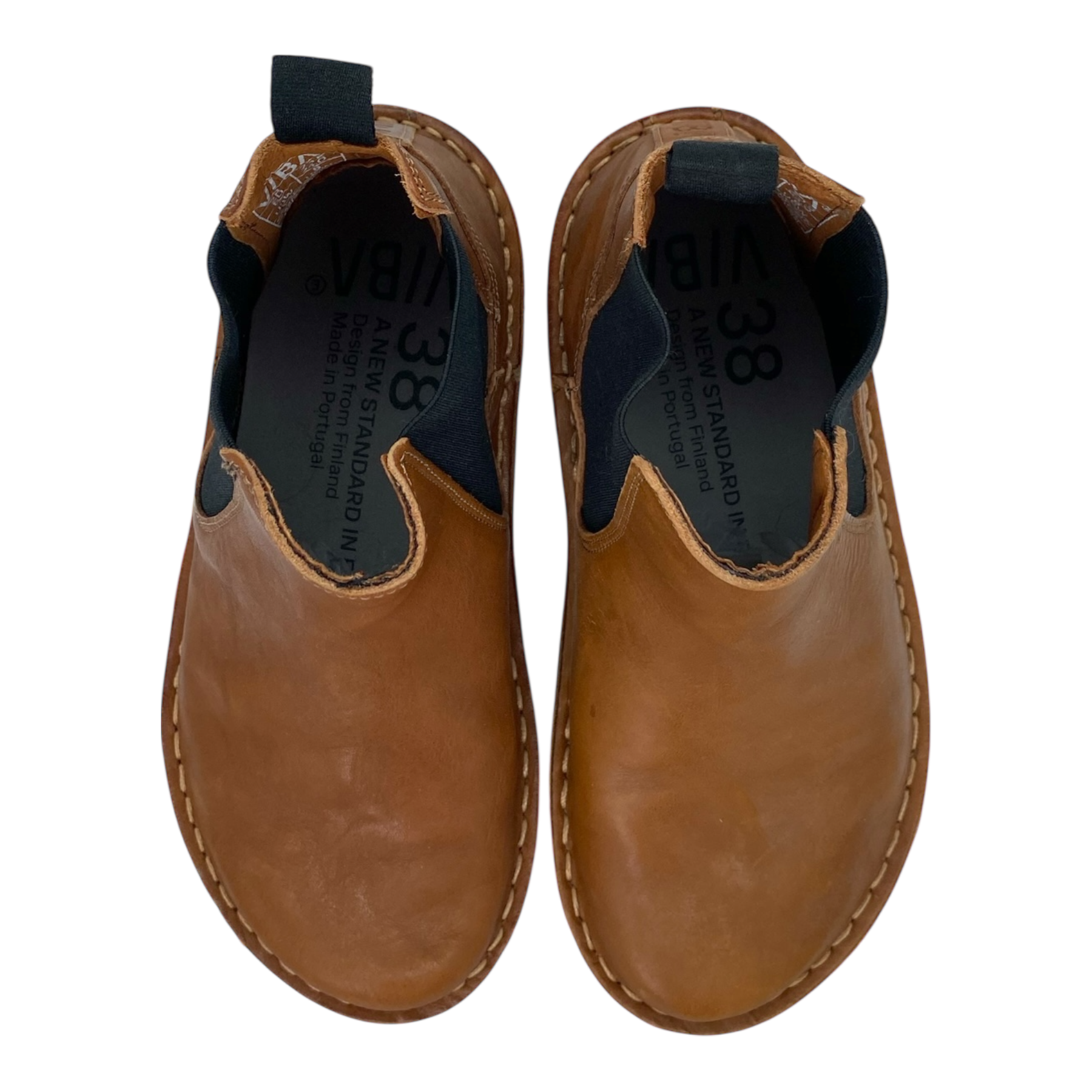 VIBAe Helsinki leather boots. The HELSINKI boot from VIBAe is made from premium vegetable-tanned leather. These year-around unisex boots are made from soft leather and come with a leather pull and large elastic gore on either side.