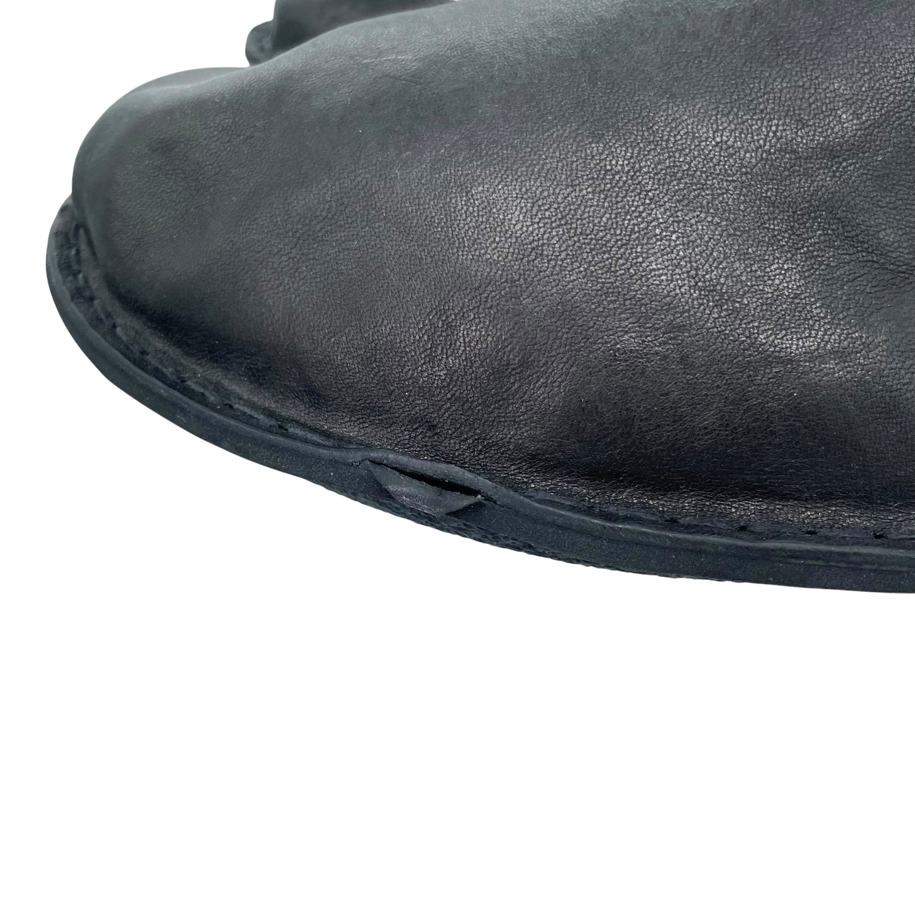 The leather has some small marks and the side of shoe has a small cut as seen in the pictures. Otherwise in very good condition.