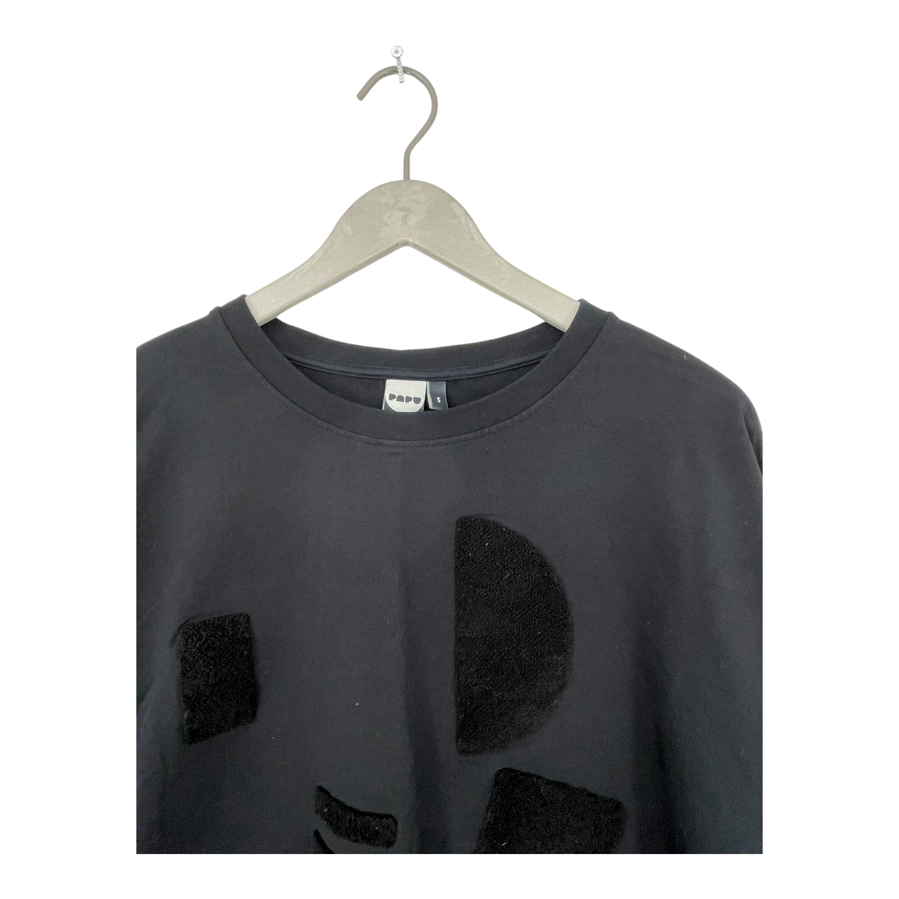 Papu women's sweatshirt with long sleeves and tufted patterns on the front of the shirt.