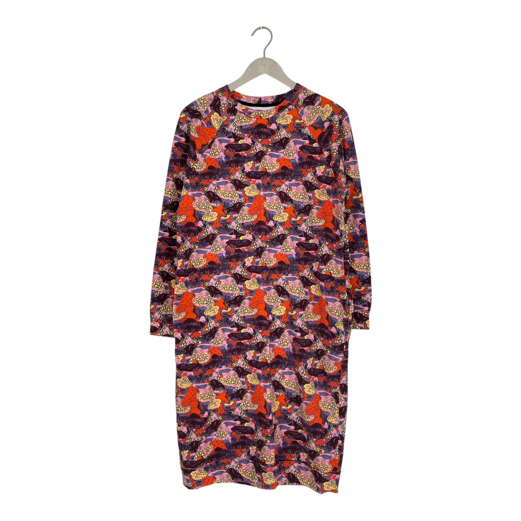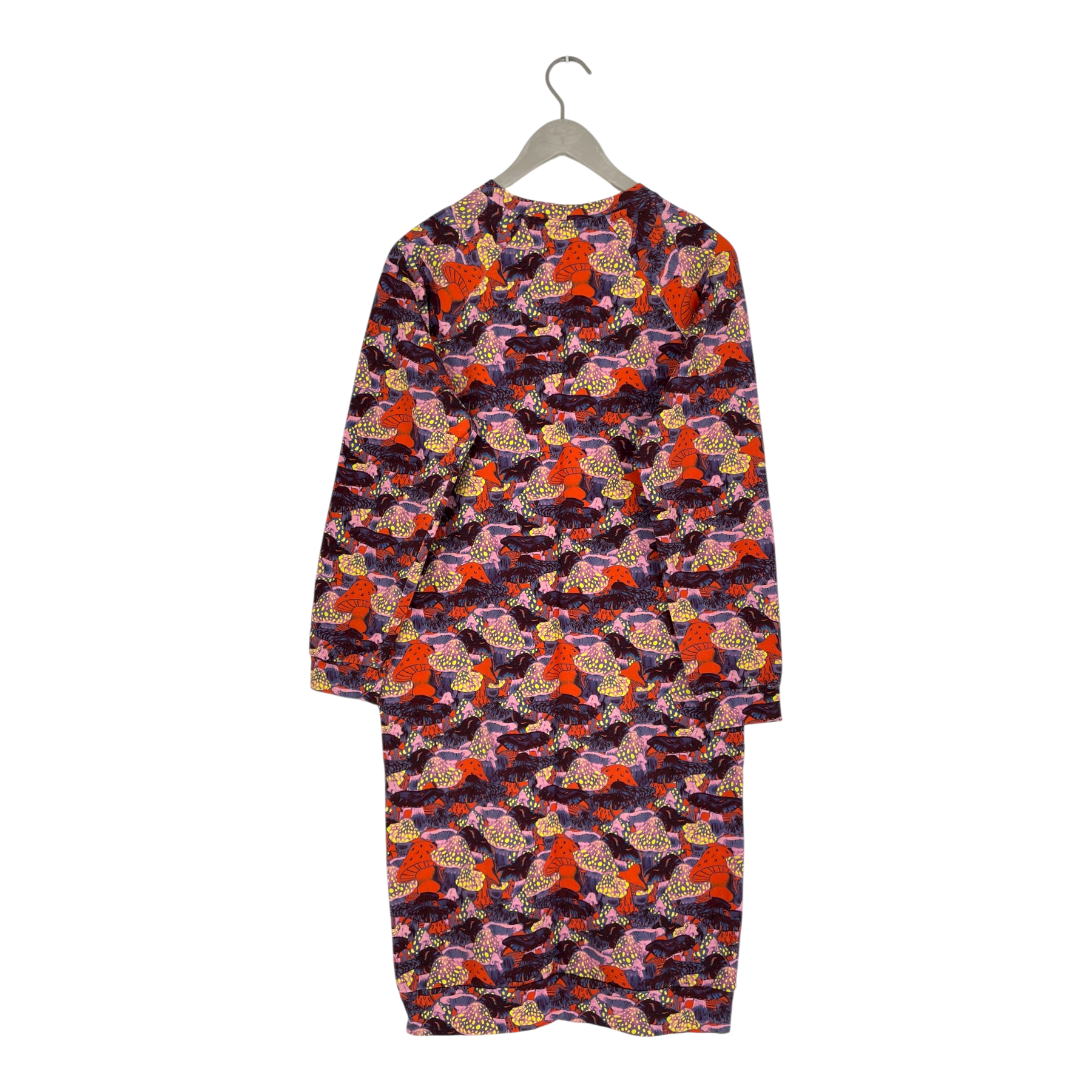Vimma college dress with long sleeves and pockets in a whimsical mushroom print. One size corresponds to around size M/L
