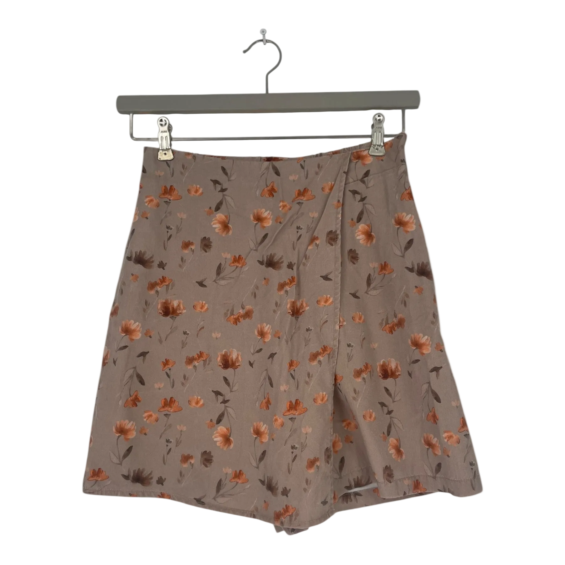 Kaiko wide leg shorts in flower print. The high-waisted shorts have pleating at the front, side pockets and a blind zipper in the side seam. The wide leg of the shorts creates a skirt-like look, and the waist is elasticated at the back.