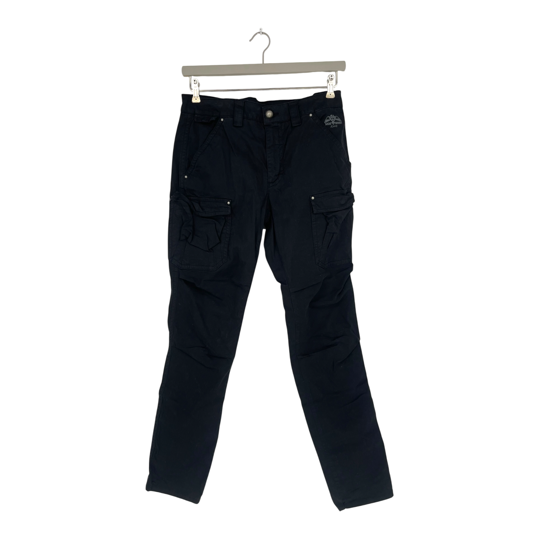 Mos Mosh cargo style pants with two side pockets, two flap pockets and stud details.
