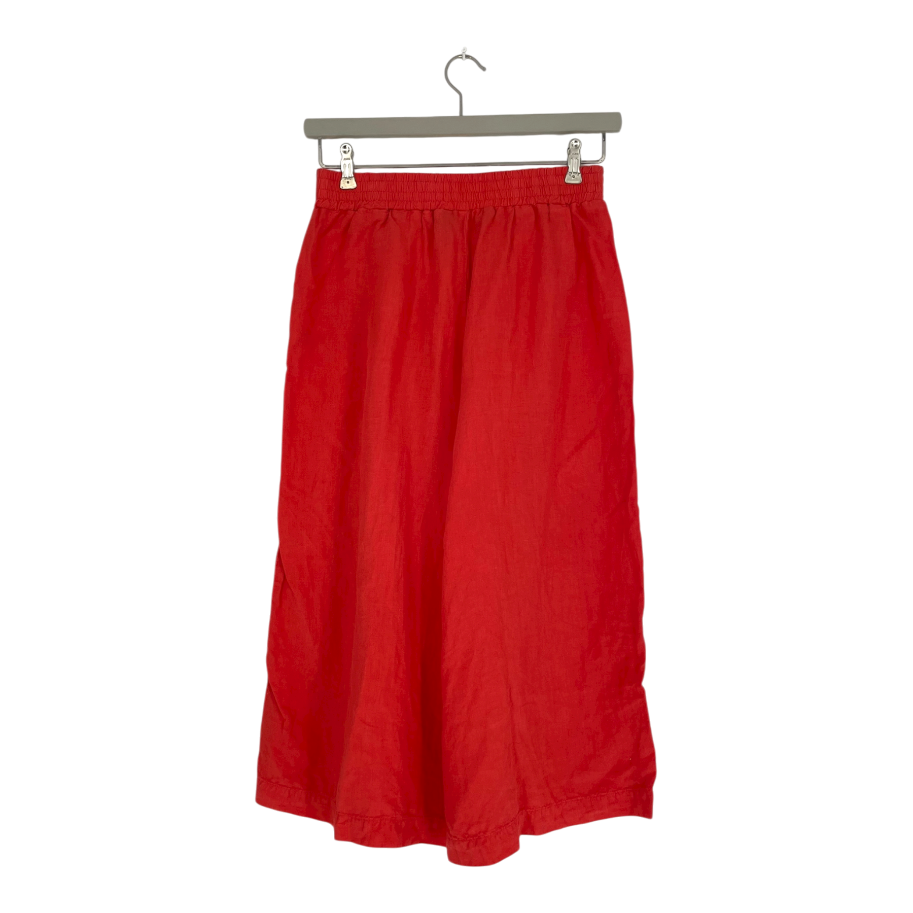 Papu women's linen culottes pants with wide mid length legs. The seams show some signs of wear, as shown in the picture.