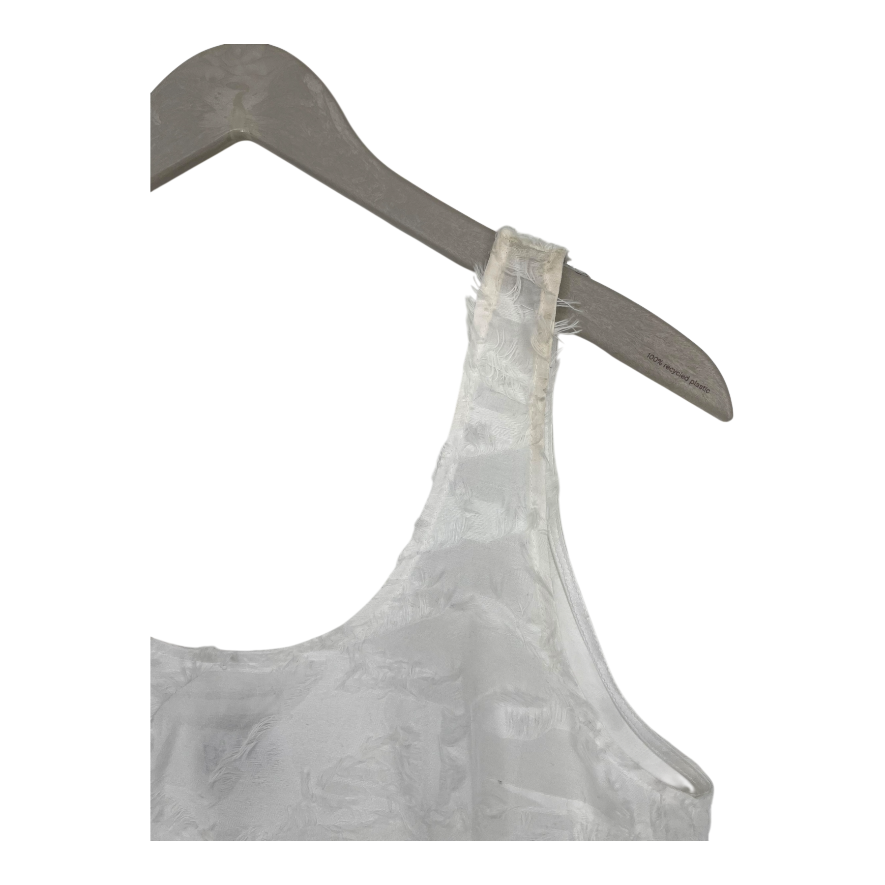 R/H Studio sleeveless light cropped top with frayed details on the fabric.