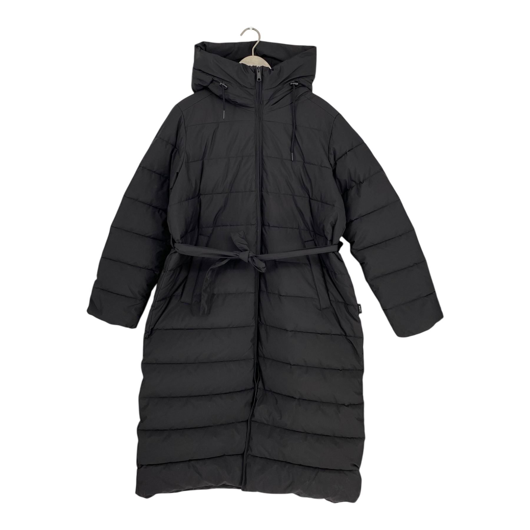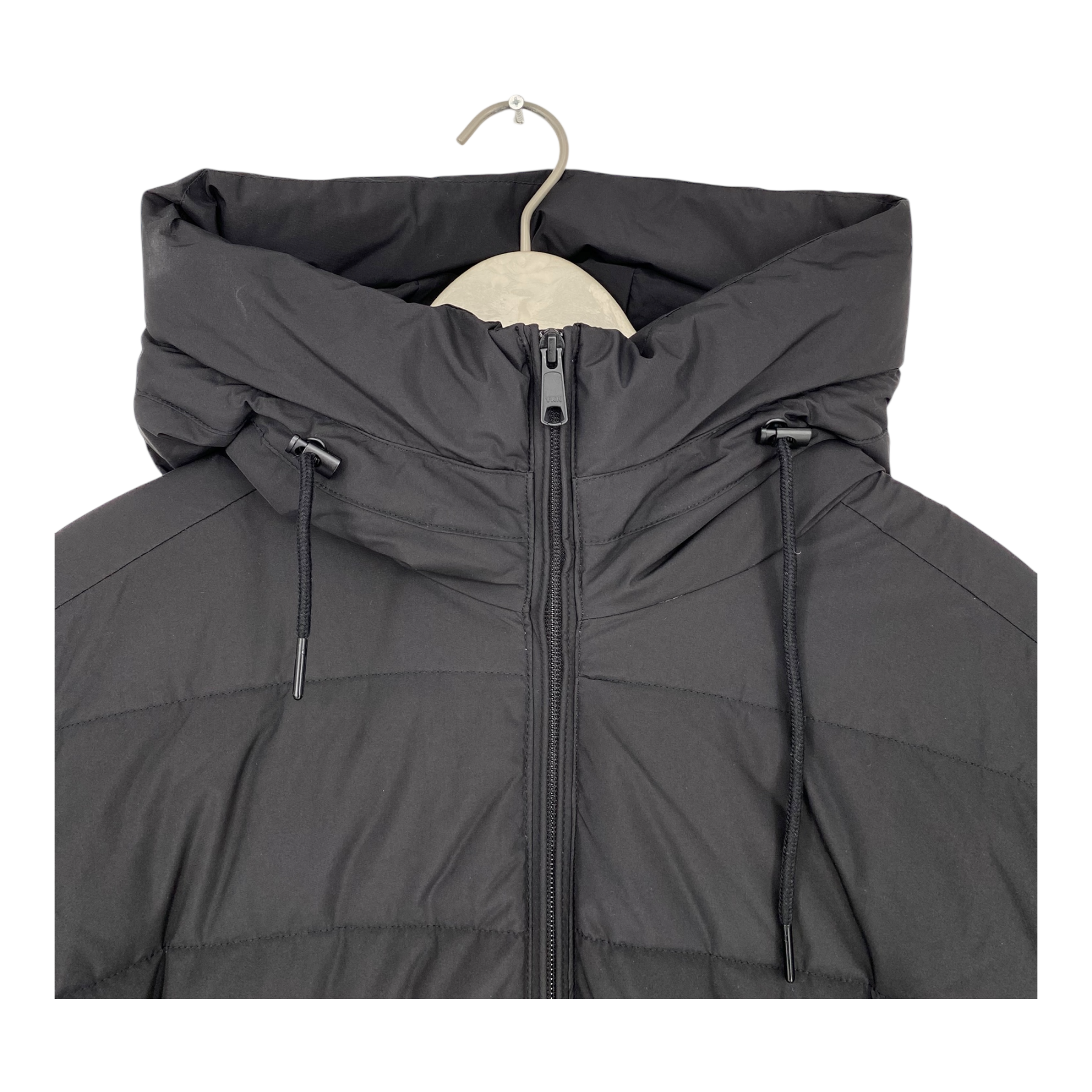 A longer padded coat that keeps you warm throughout the winter. The Freja coat, designed with a relaxed fit, has a lining made of 100% Sorona® recycled polyester that mimics down. The partially plant-based Sorona® insulation is breathable and retains warmth. The snorkel hood provides protection from the wind, and the belt detail allows you to adjust the fit as needed.