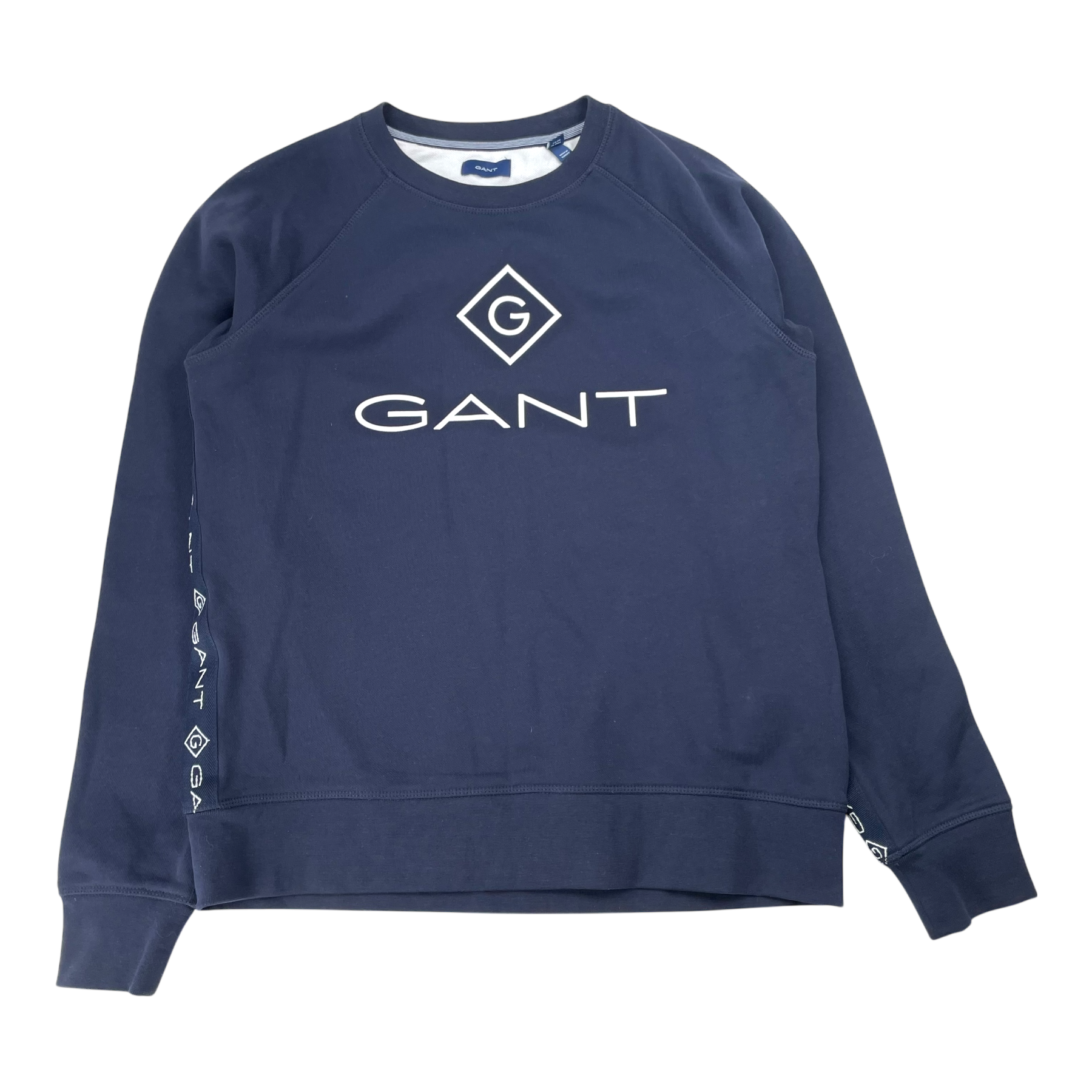 Gant sweatshirt with a logo in the front and the logo going down the sides and sleeves.