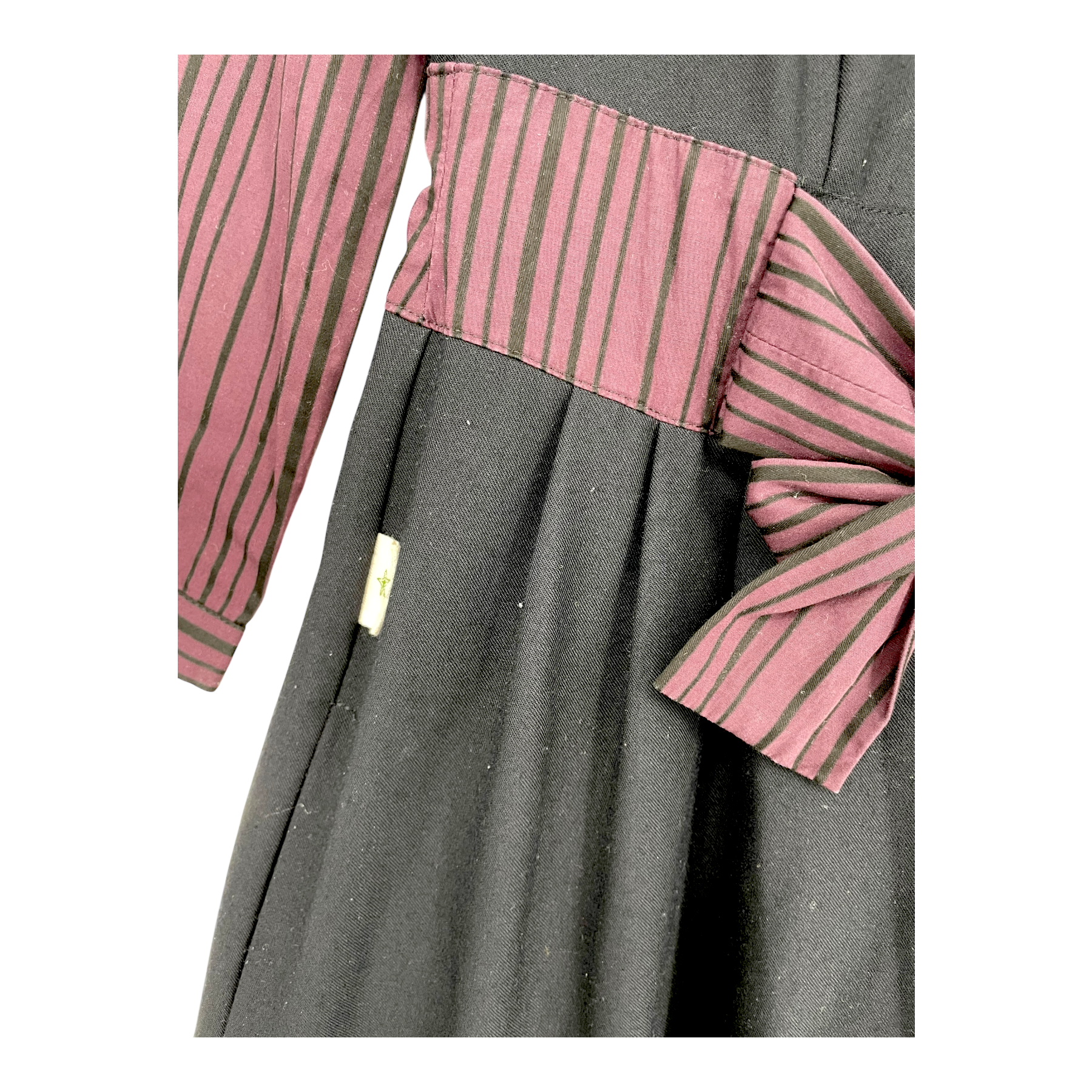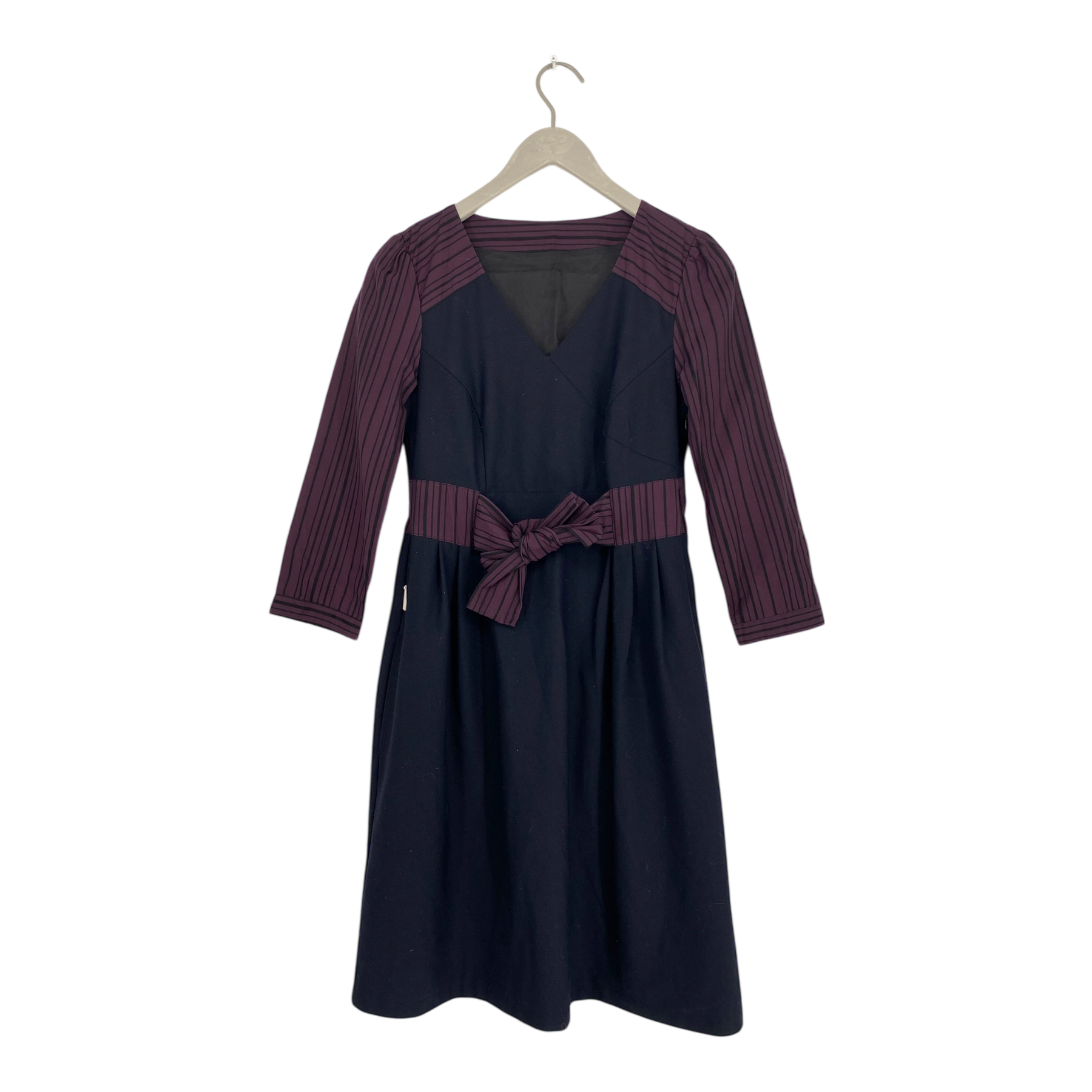 Globe Hope vintage style dress with 3/4 sleeves, wide neckline with a v-drop on the back and fabric belt closure on the back.