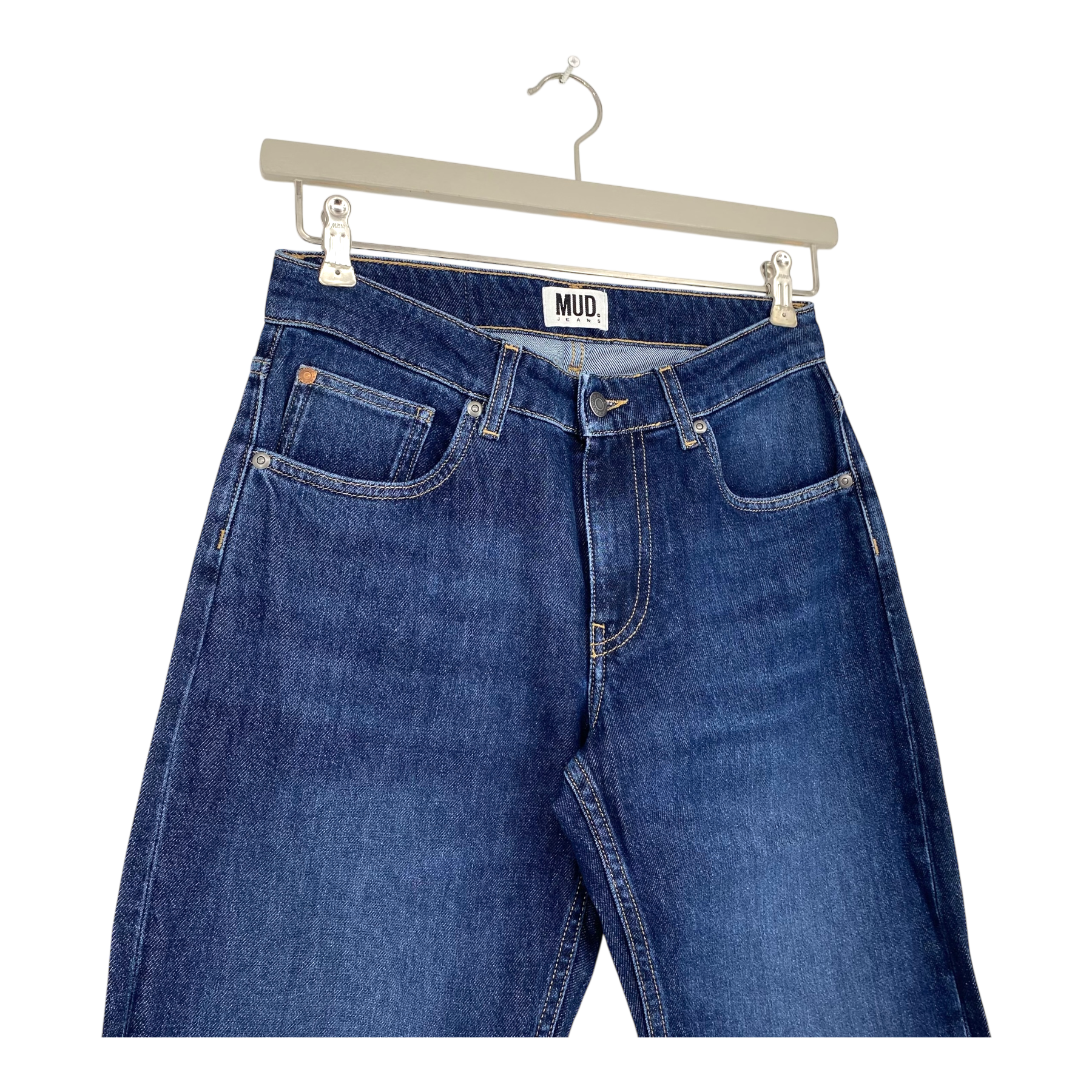 Mud Jeans Carry mid straight jeans are must-have with a comfort stretch. Featuring a flattering mid-rise waista relaxed top block with a straight leg. There is enough 'body' in the fabric to maintain the original feel that jeans should have. Dress up or down, Carry will be your companion for any occasion.