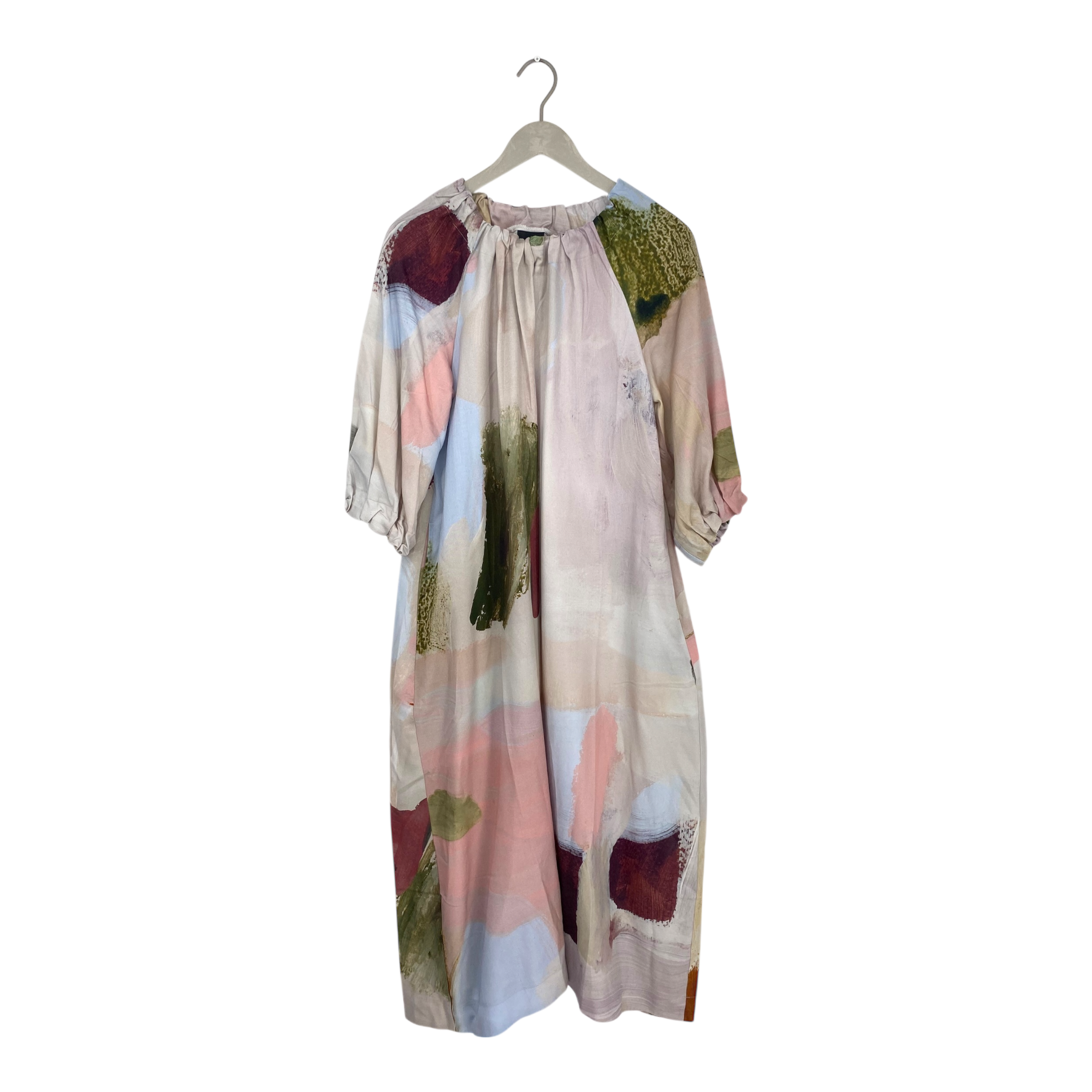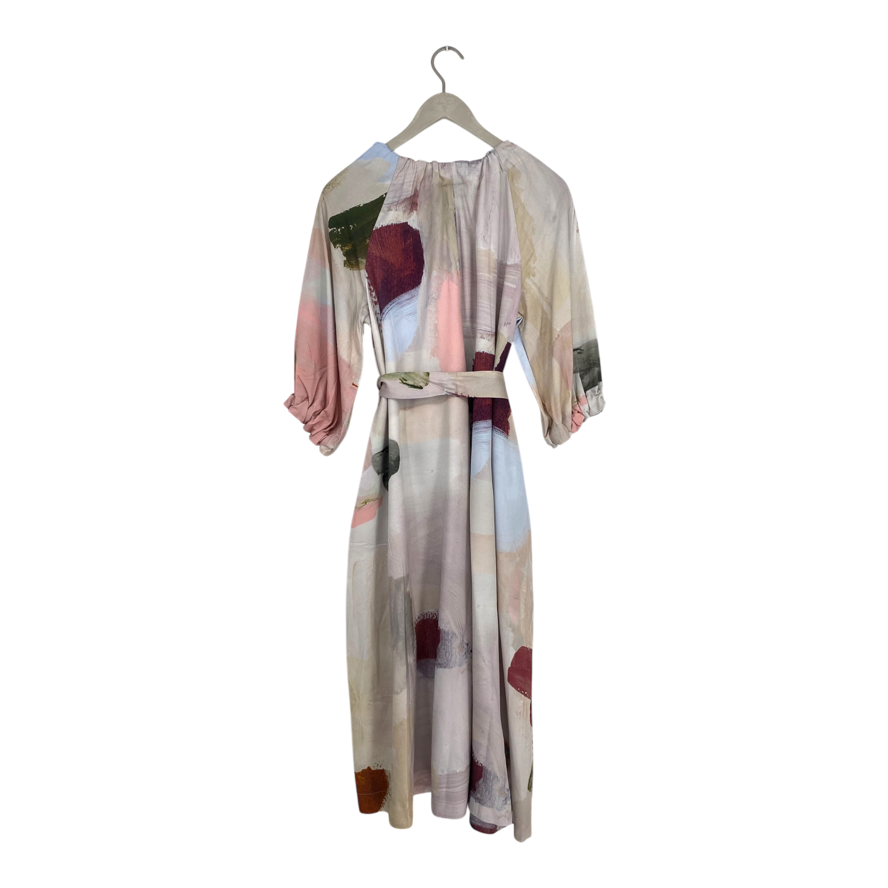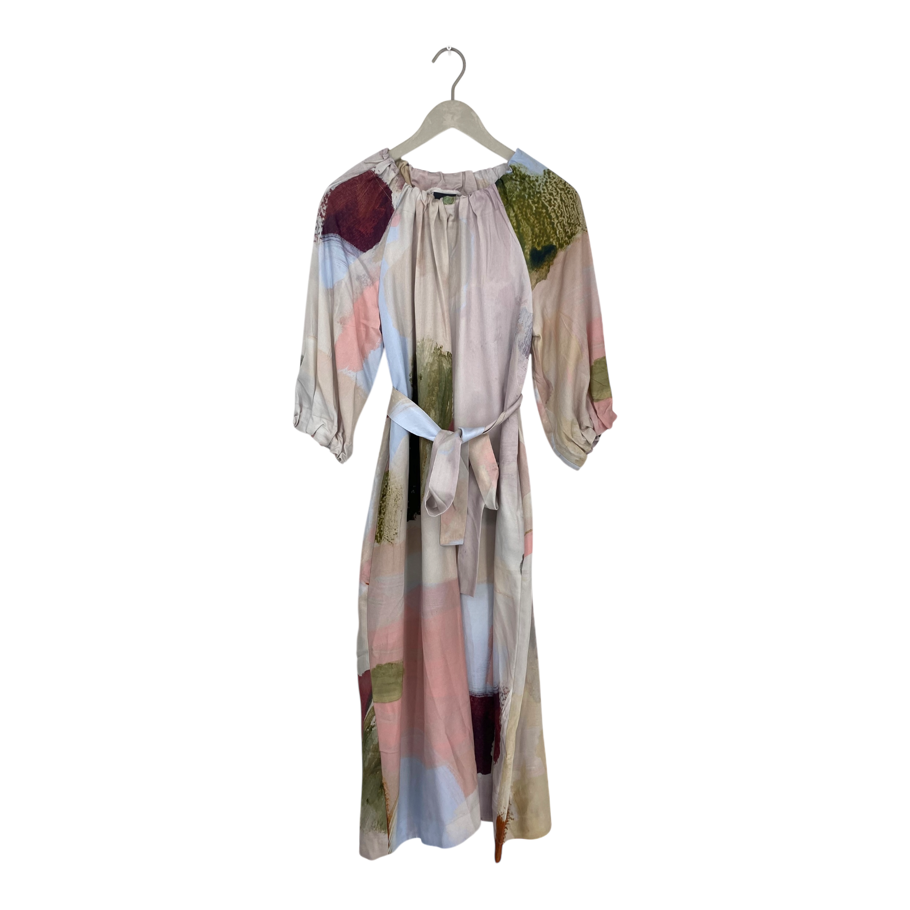 Papu women's belted dress with short balloon sleeves and a detachable belt.
