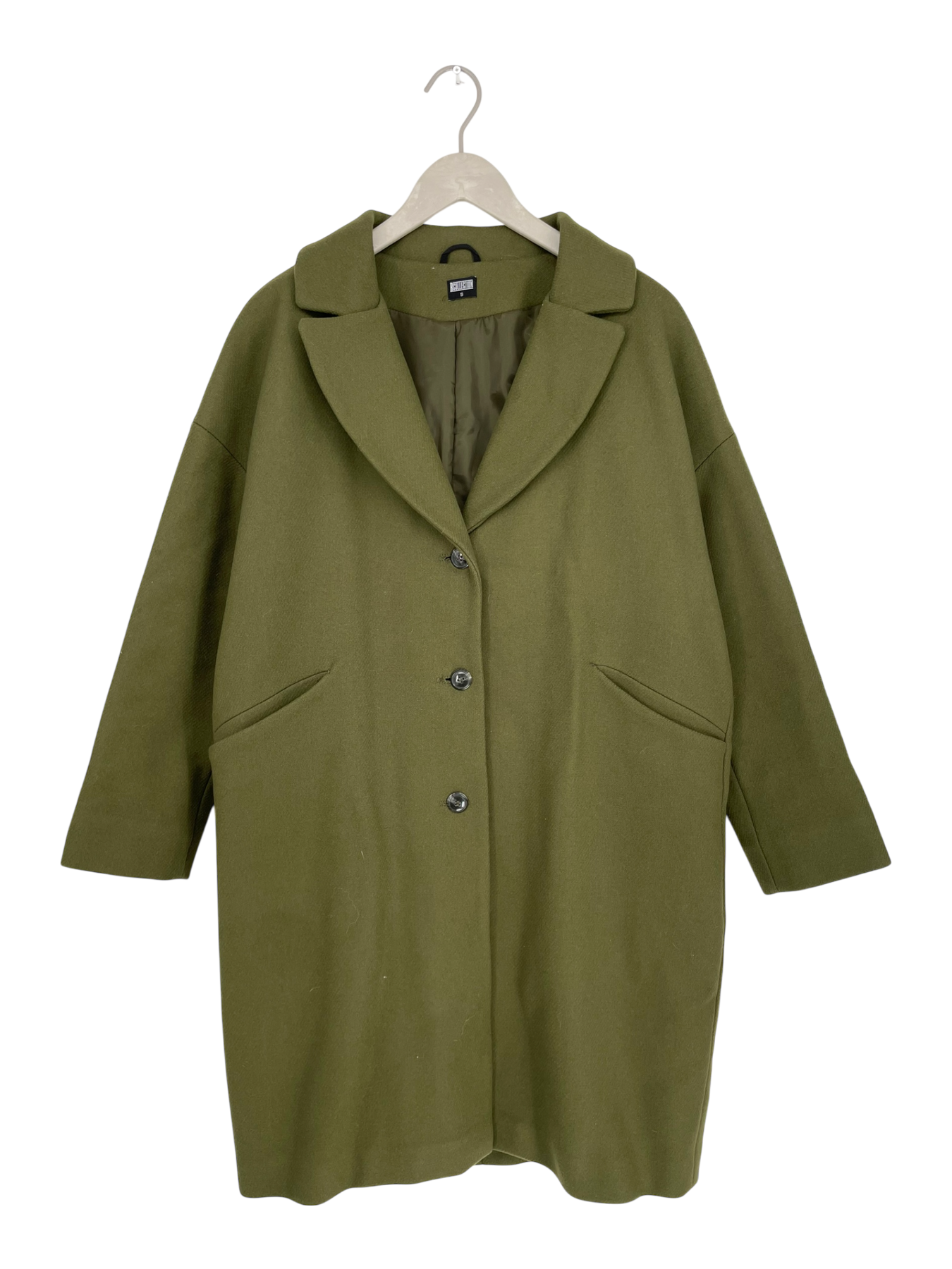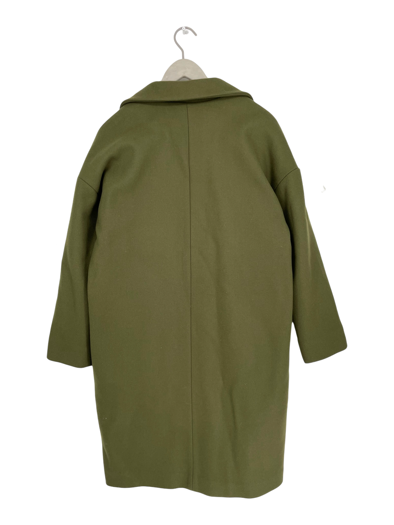 R-collection wool blend coat, with button closure, lining and pockets on the front.