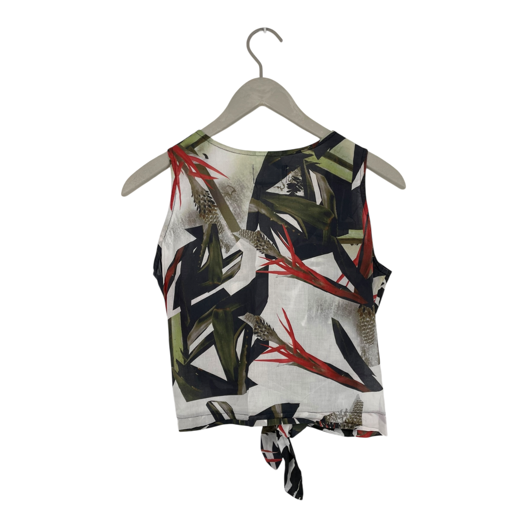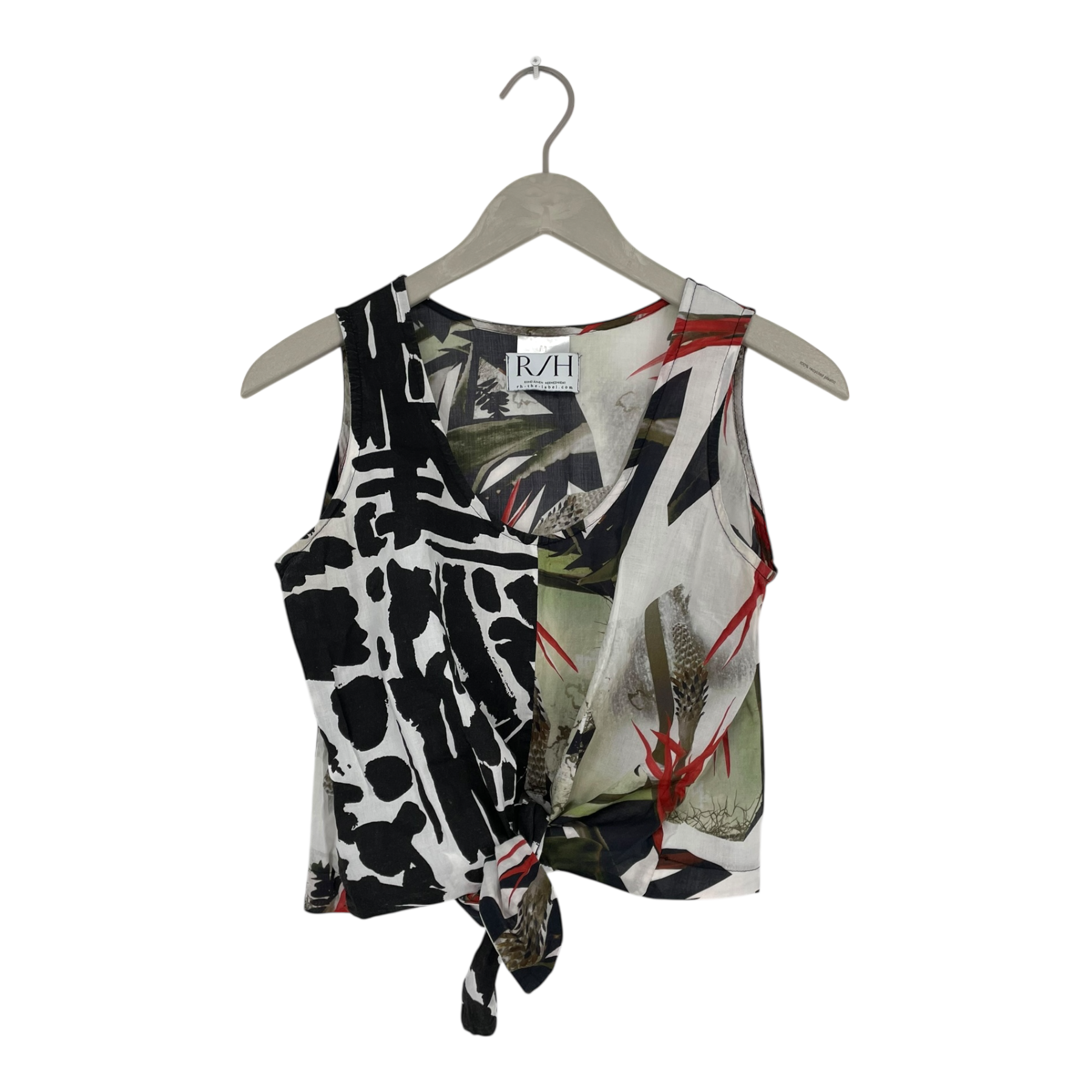 R/H Studio light cropped woven top that can be tied at the front.