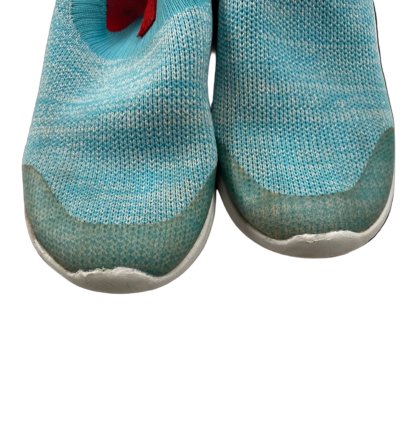 Reima Bouncing slip-on sneakers. Upper is soft knit material. Shoes are easy to put on. The front seam has some signs of use as seen in the last picture.