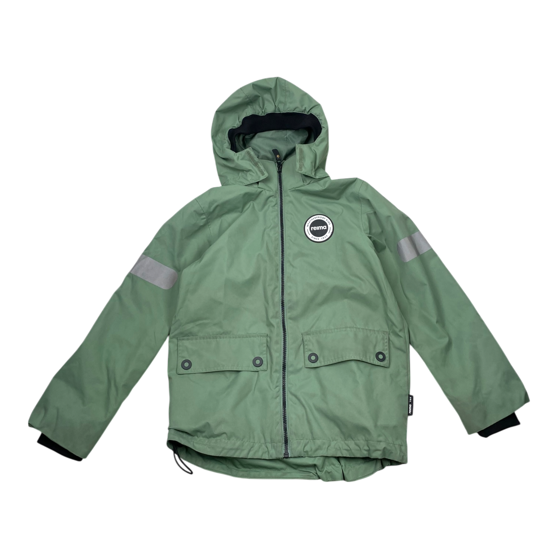 Reima Sydvest midseason jacket with detachable lining to adjust the warmth of the jacket. Detachable hood, two flap pockets and zipper closure. Jacket has originally been waterproof. The item has some signs of use.