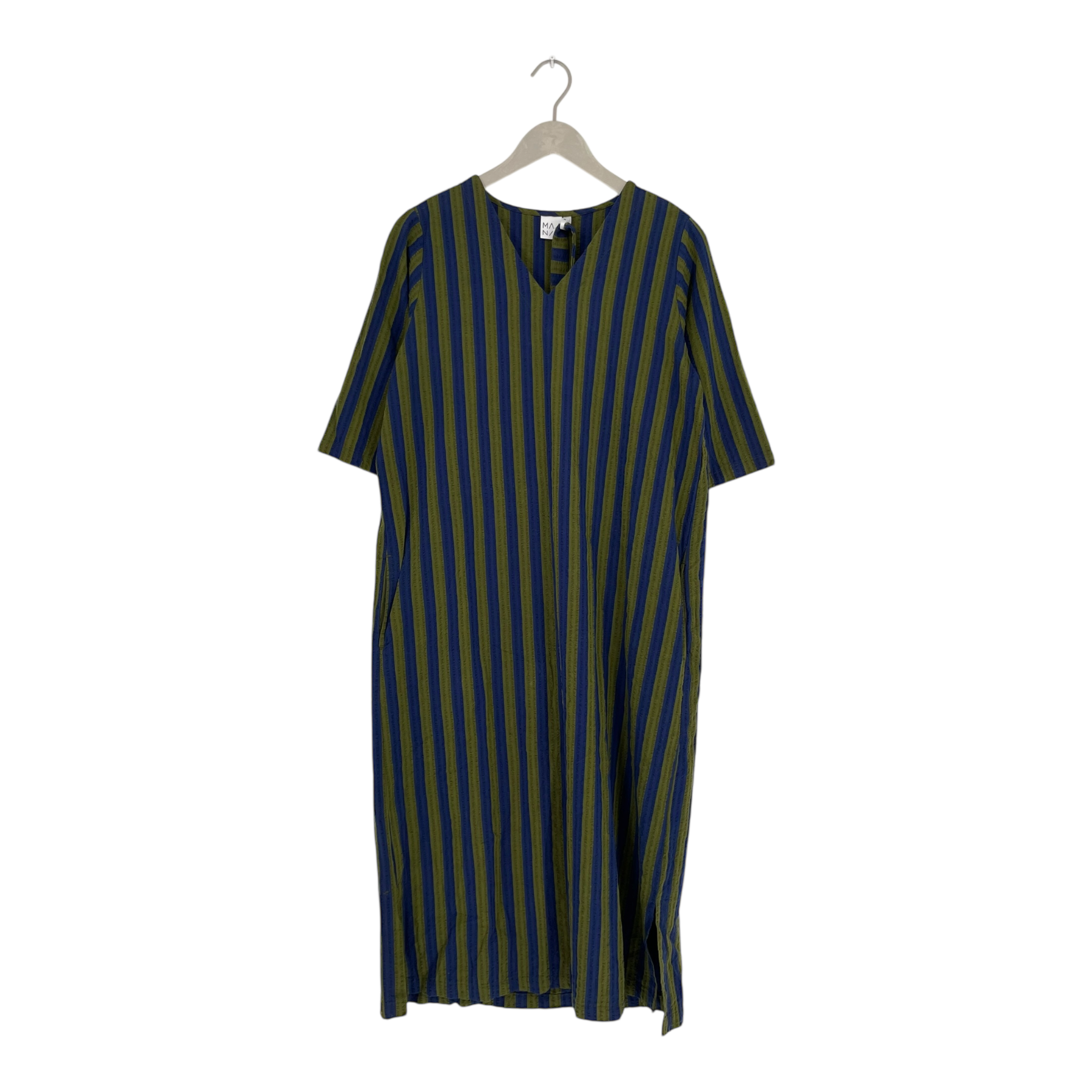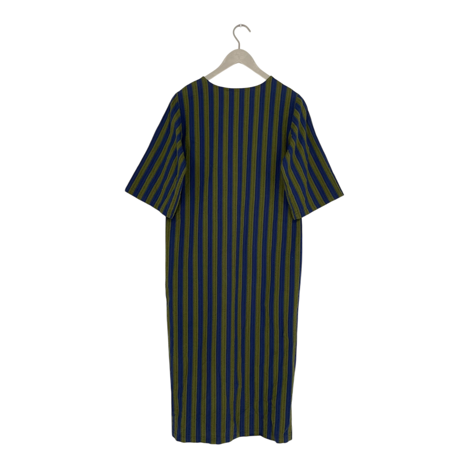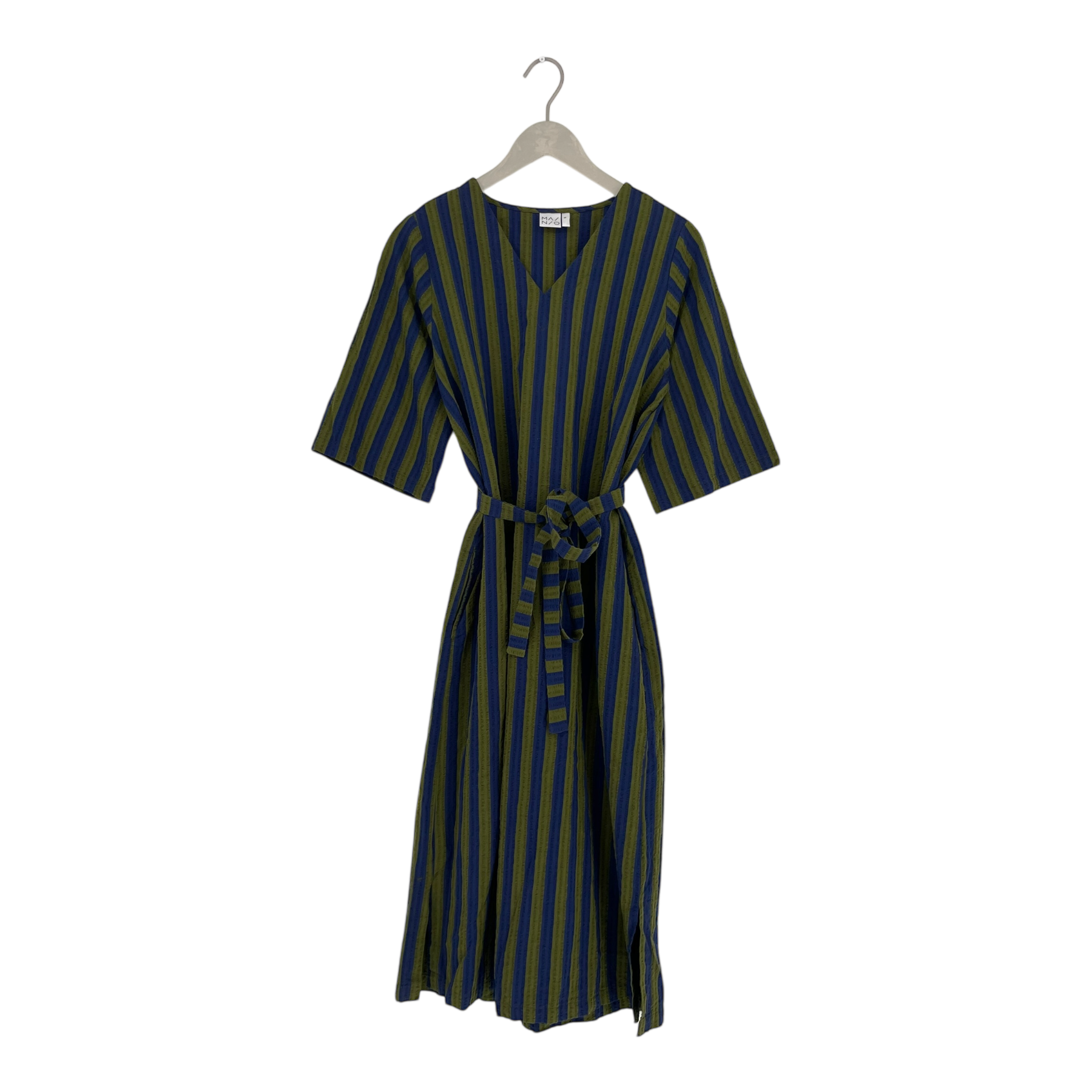 Mainio woman woven Stripy Seersucker dress with a belt to tie with.