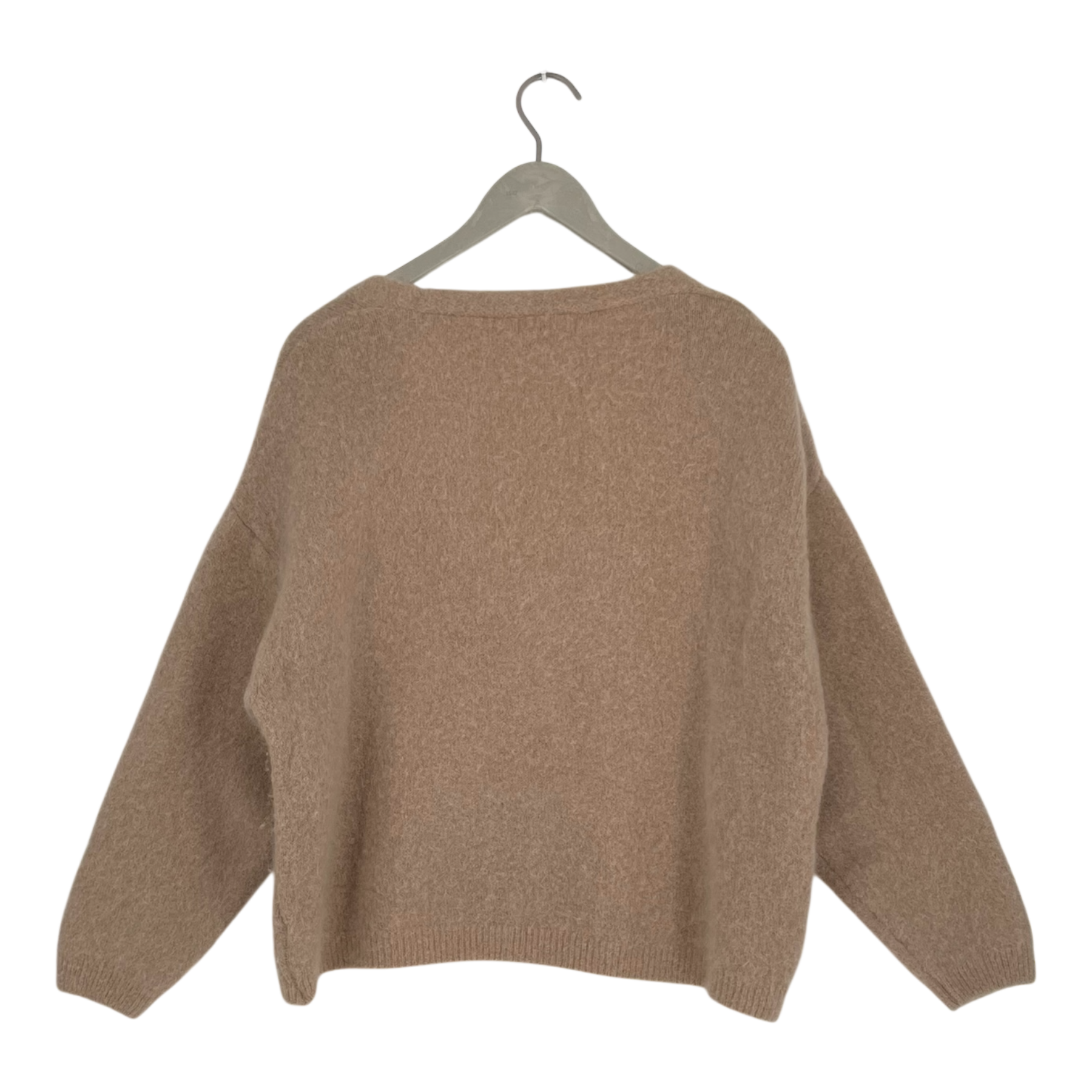 Bypias knitted cardigan. The tag says onesize, but looks like size M/L.