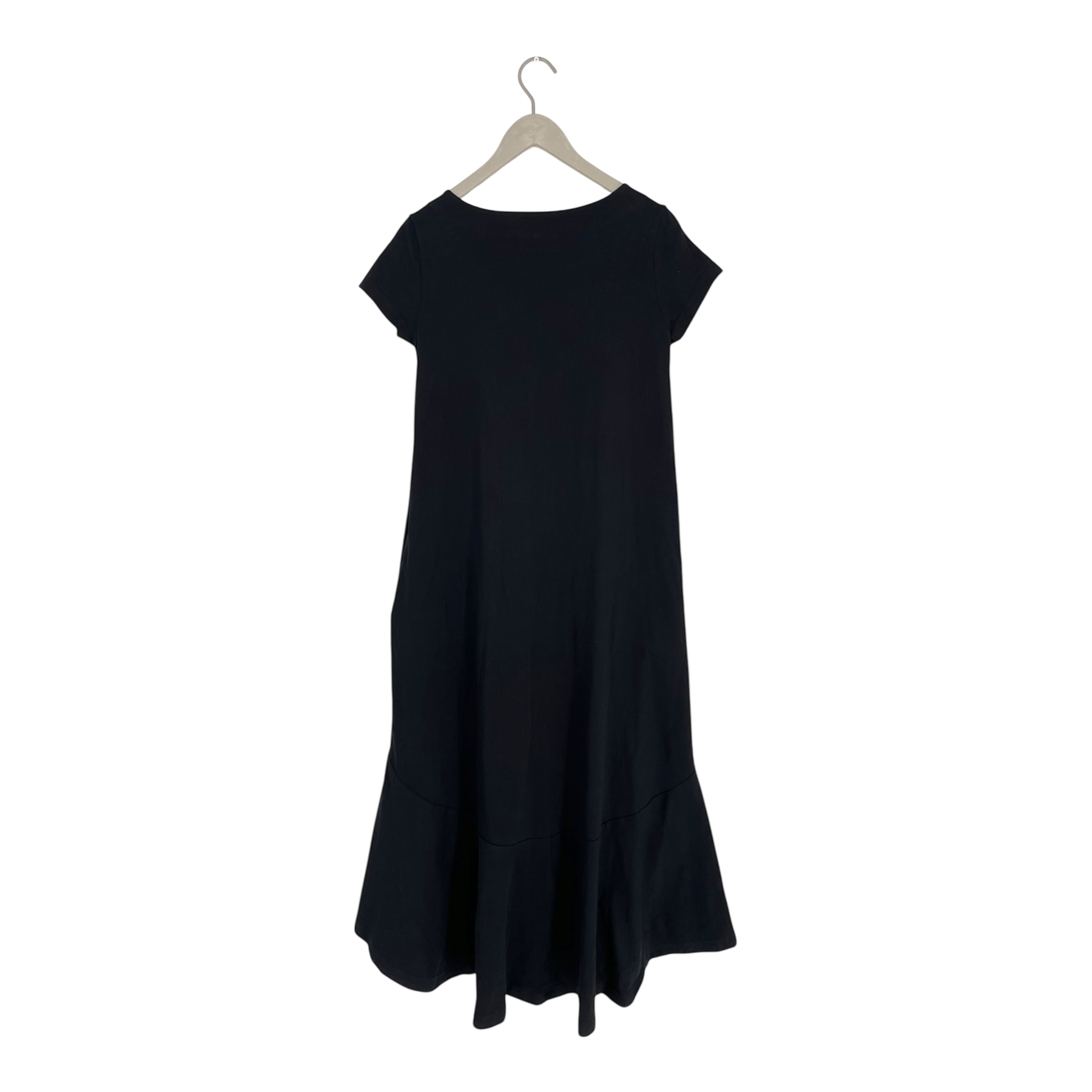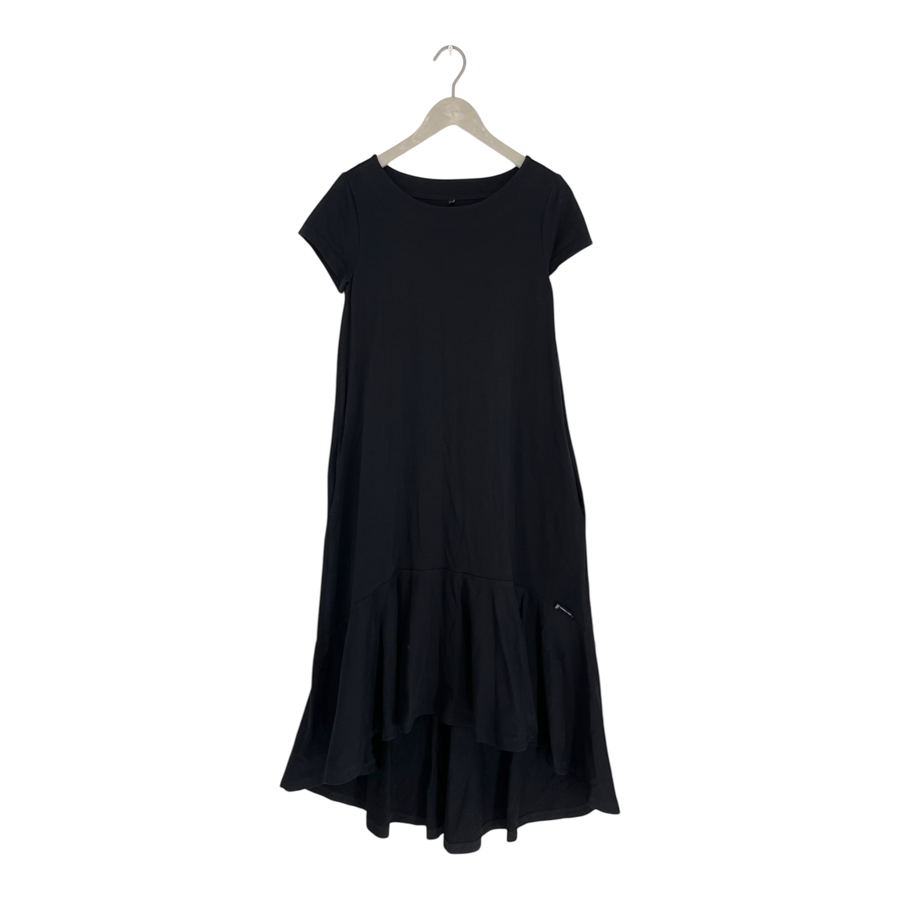 Ommellinen Hulmu tricot dress with short sleeves, side pockets and a frilled uneven hemline.