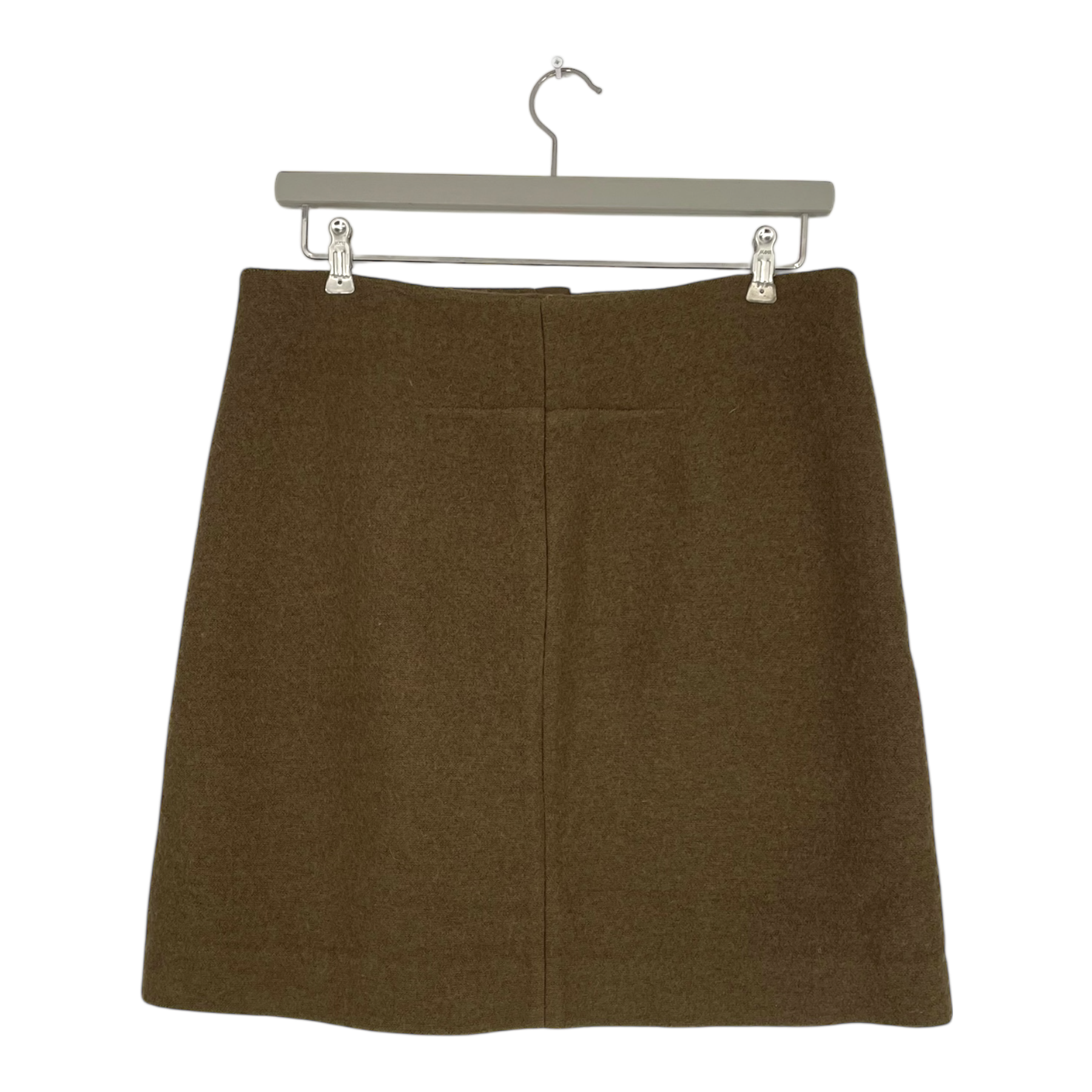 COS wool skirt with two diagonal front pockets, full length zipper with flap on the front,