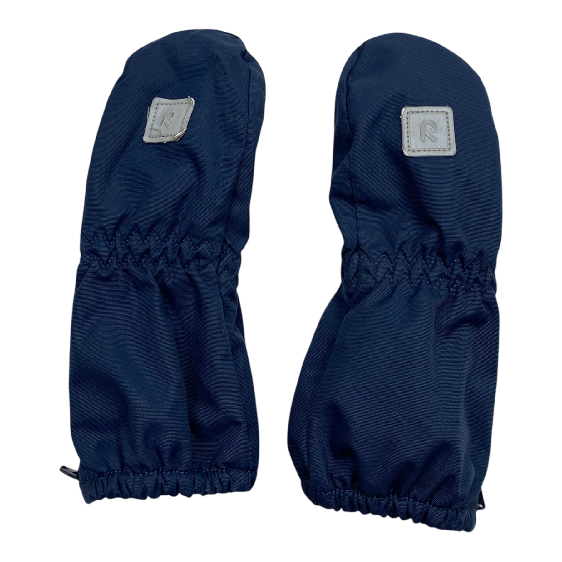 Reima Poimii mid season gloves with grip material in the palm and thumb, a strap for easy adjusting at the wrist, and a reflective logo. The material is originally wind and water-proof.