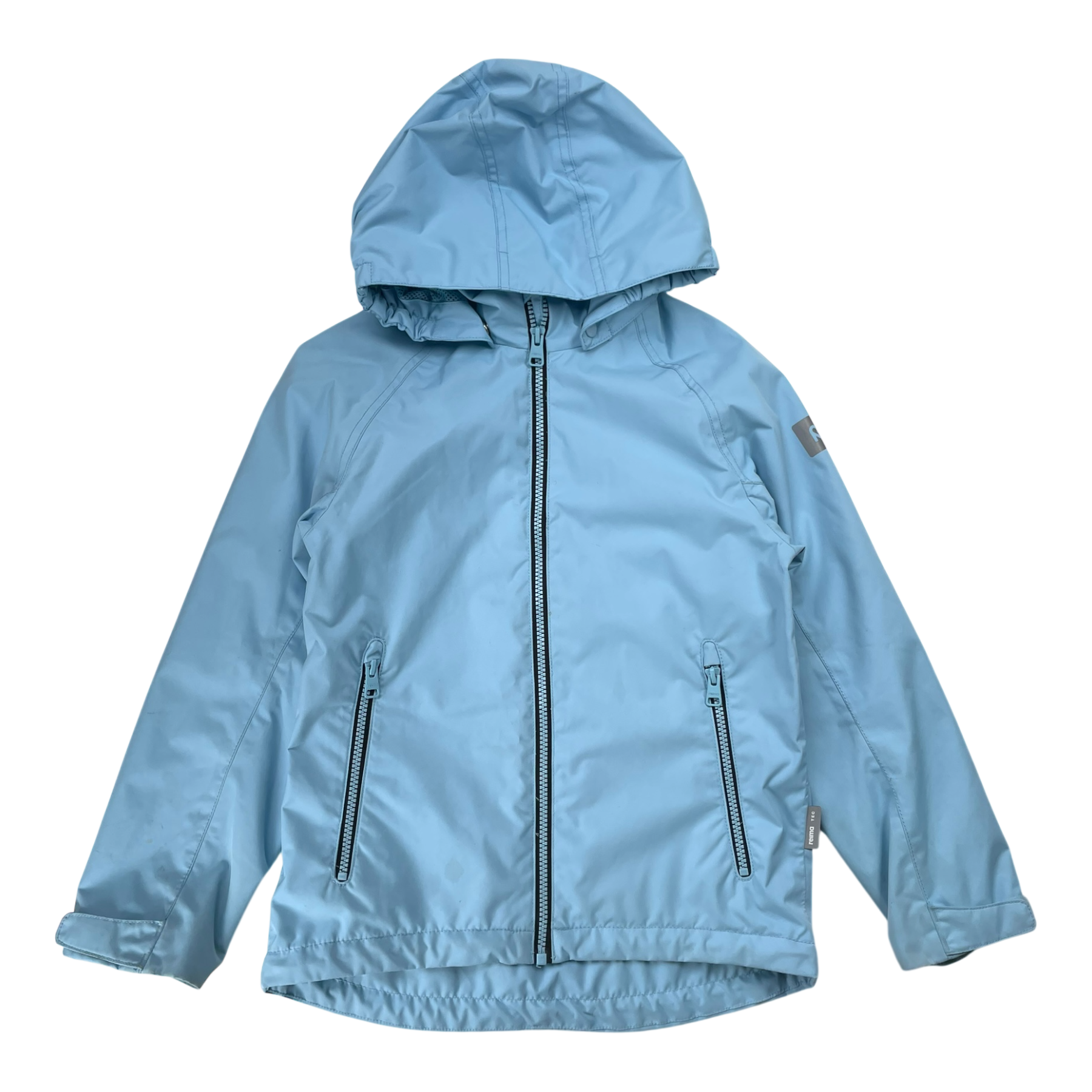 Reimatec Soutu jacket with a detachable hood, two zip pockets on the sides, reflective details, and adjustable elastic at the hem. The material is originally waterproof up to 8,000mm water column, and the seams are sealed. Fluorocarbon-free water and dirt repellent finish BIONIC-FINISH®ECO.