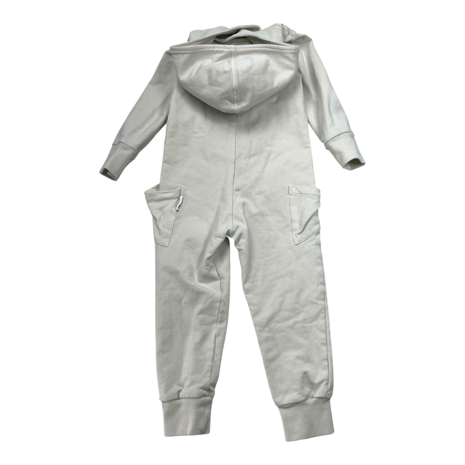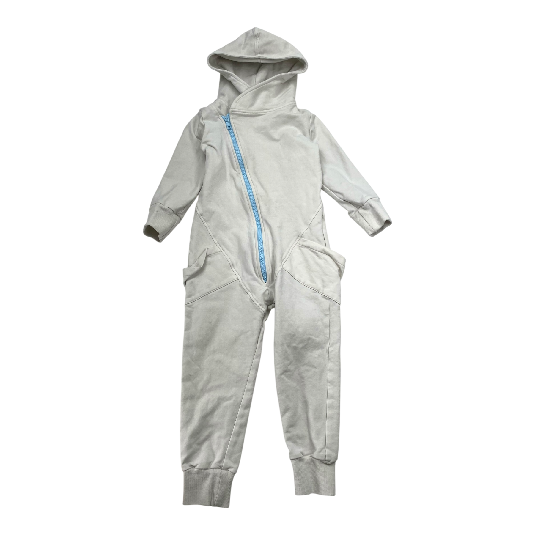 Gugguu jumpsuit with an asymmetrical zipper and two pockets in the front.