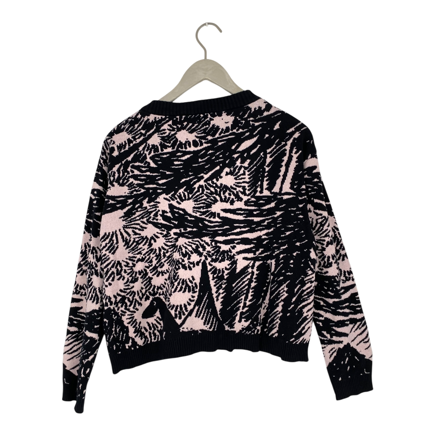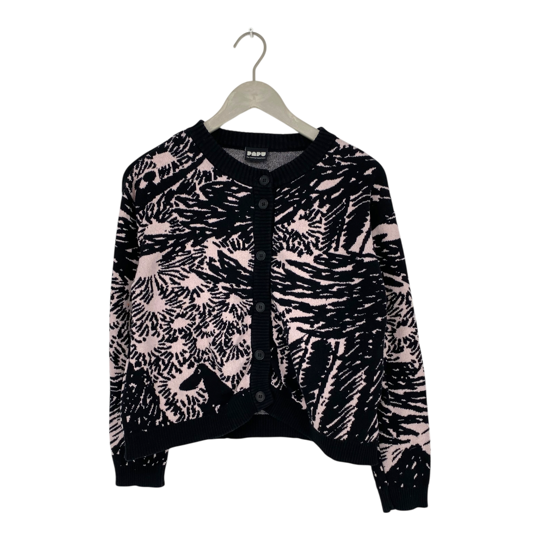 Papu women's jacquard knitted short cardigan with multicolored print and buttons in the front. Relaxed fit.