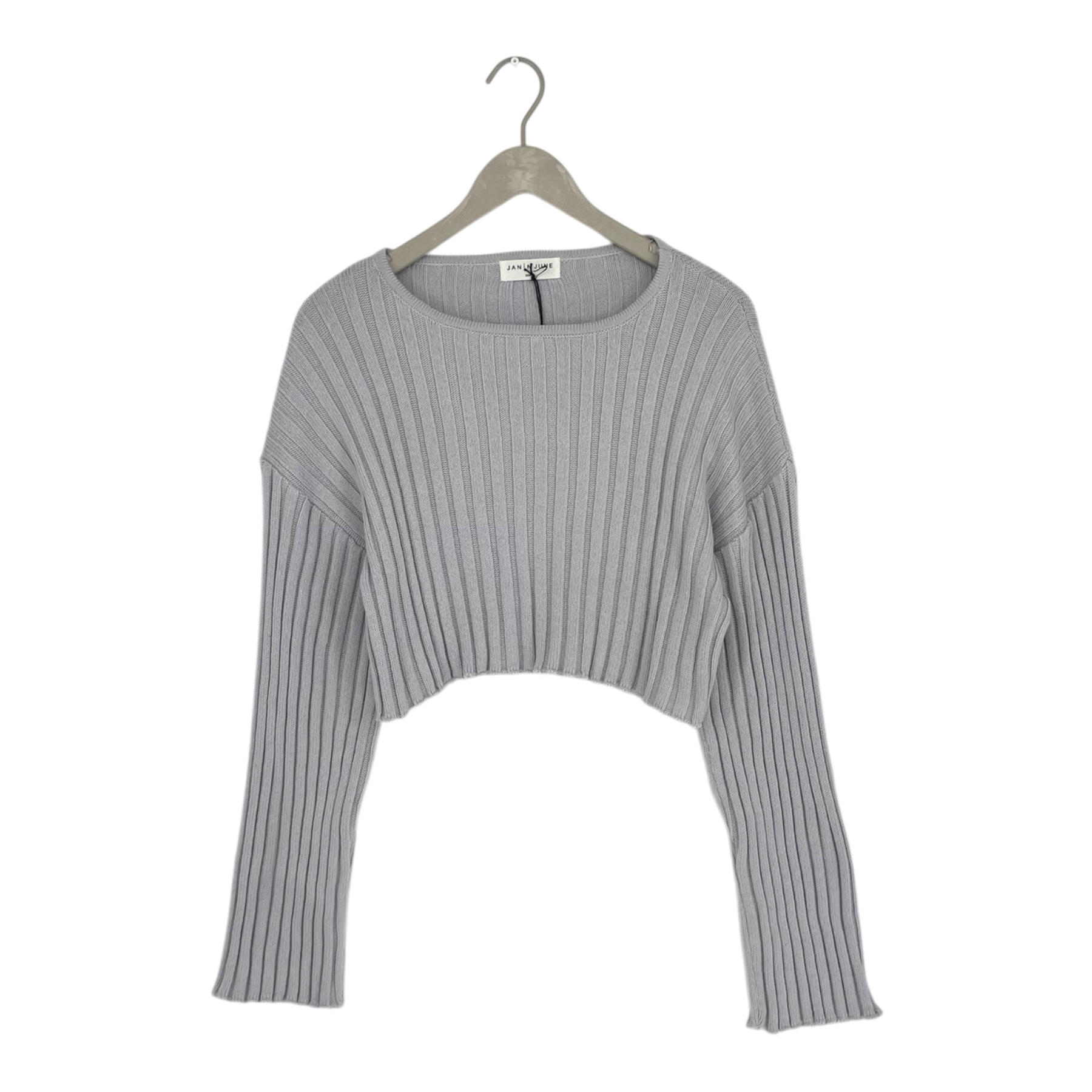 Jan 'n June cropped ribbed knit jumper featuring a relaxed fit with long sleeves and round neckline. The cropped silhouette hits at the waist for a modern, versatile look. Made from GOTS certified organic cotton.