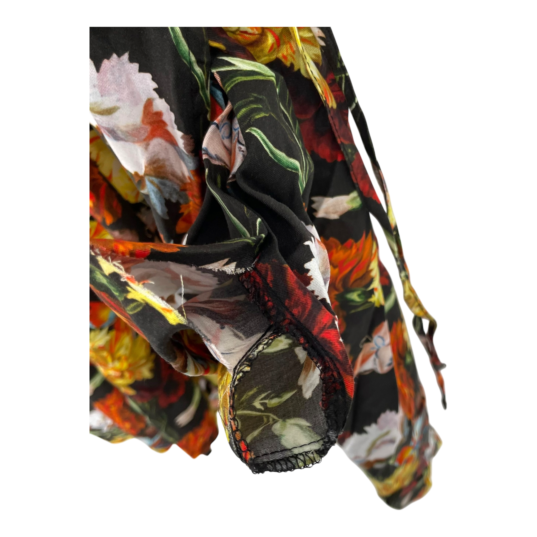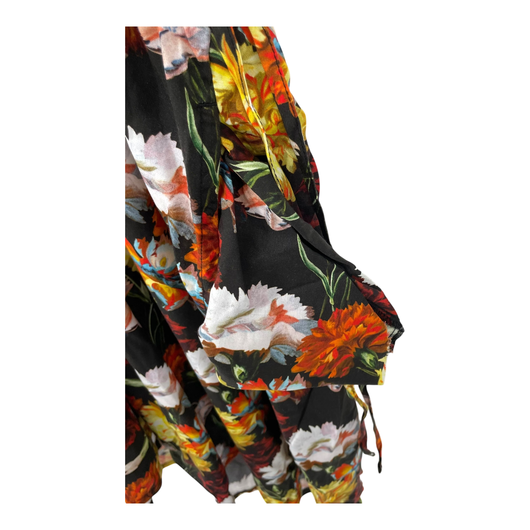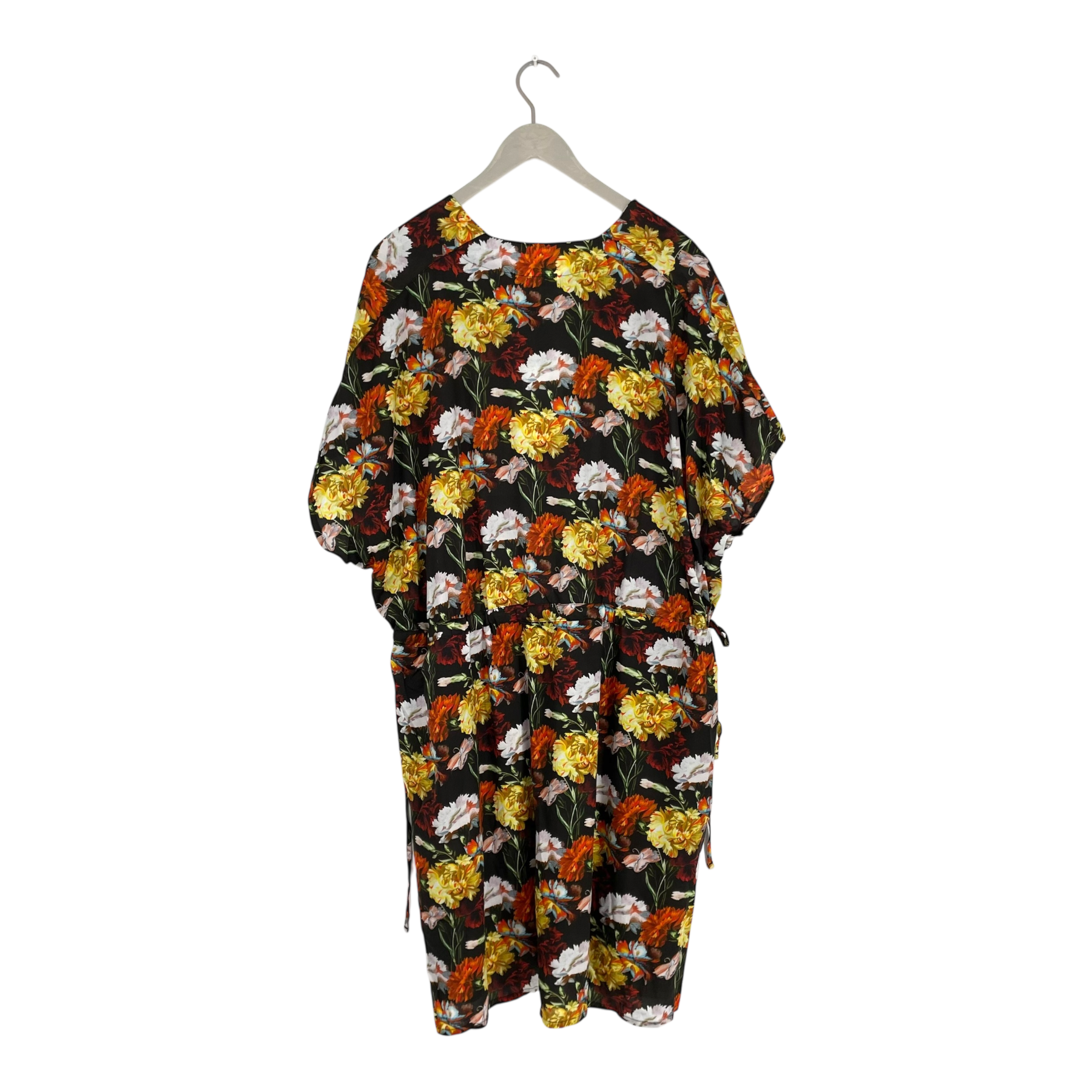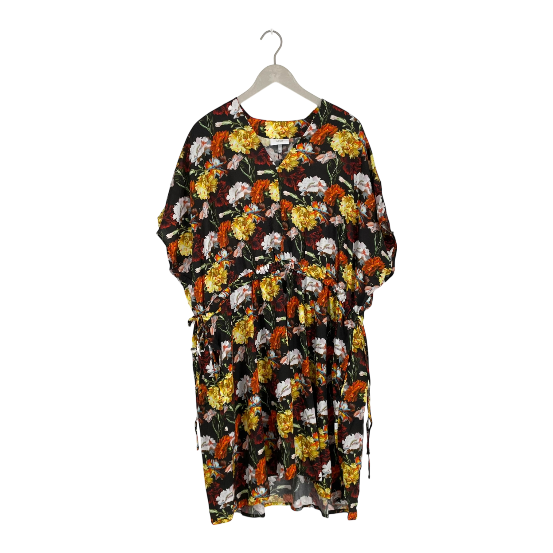 Makia Bouquet dress is woven flowy short sleeve dress with an adjustable drawstring on the waist and a v-neck.