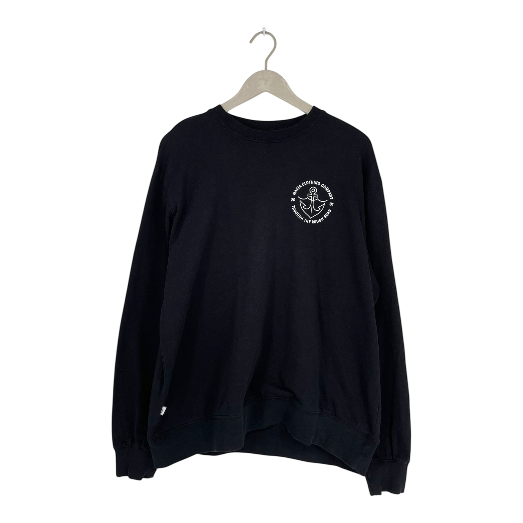 Makia long sleeve sweatshirt with a Through the rough seas print on the front.