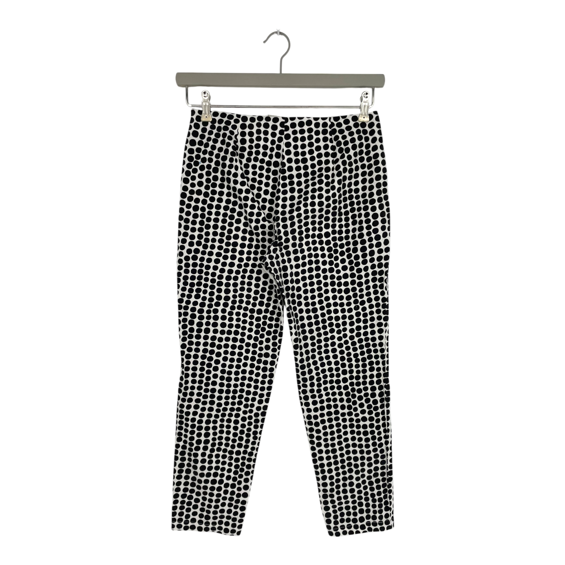 Marimekko "Byysa" pants in black & white dot print. Cropped length. Zipper on the side.