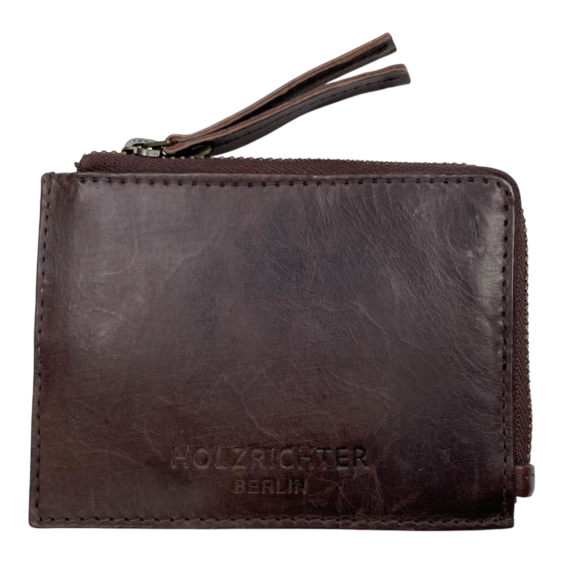 Holzrichter Berlin small leather wallet / card holder / coin purse. Charming in both form and function. Slim design with one zipper compartment and card compartments inside. Fits cards, bills, and coins. There is a key chain and a key ring to attach to your keys.