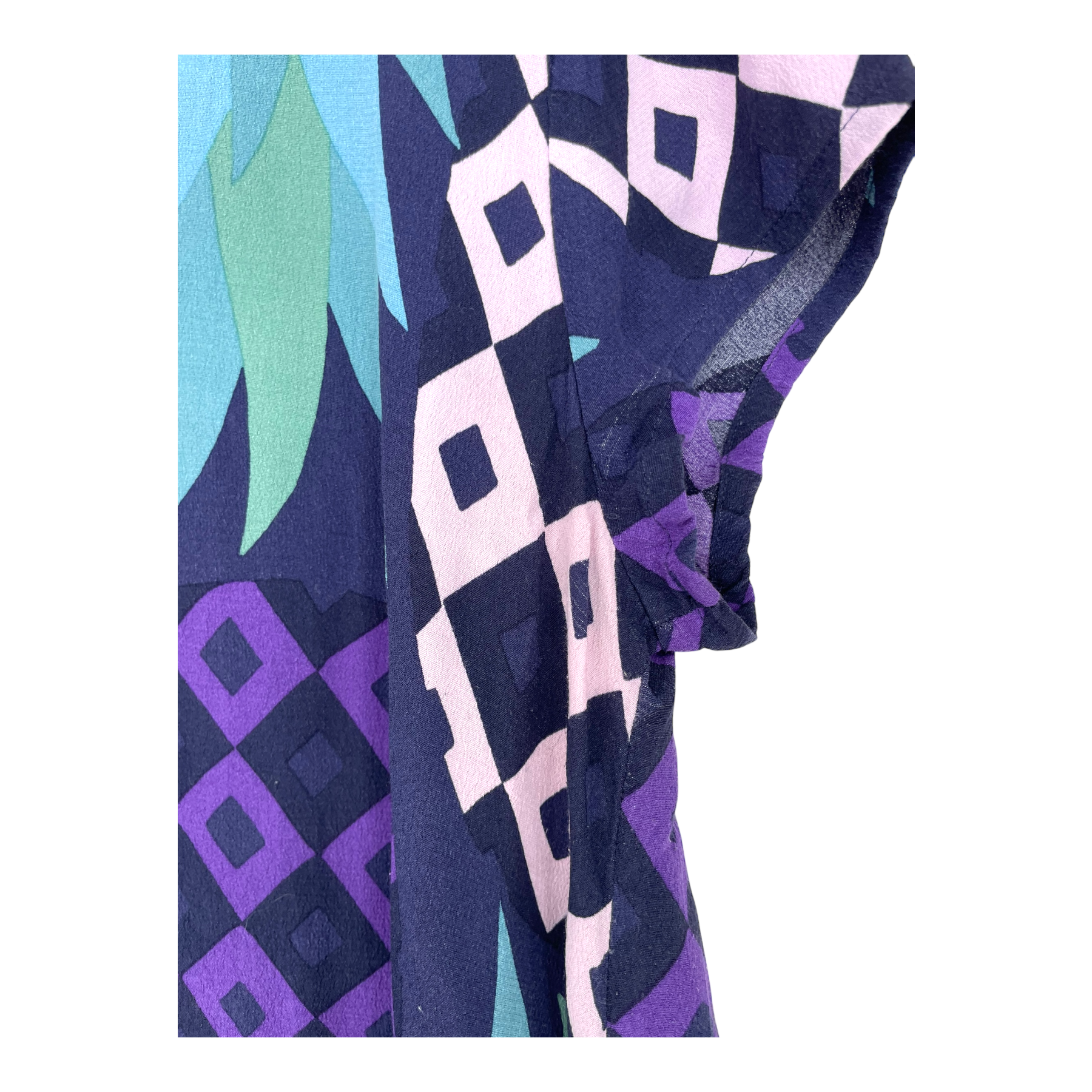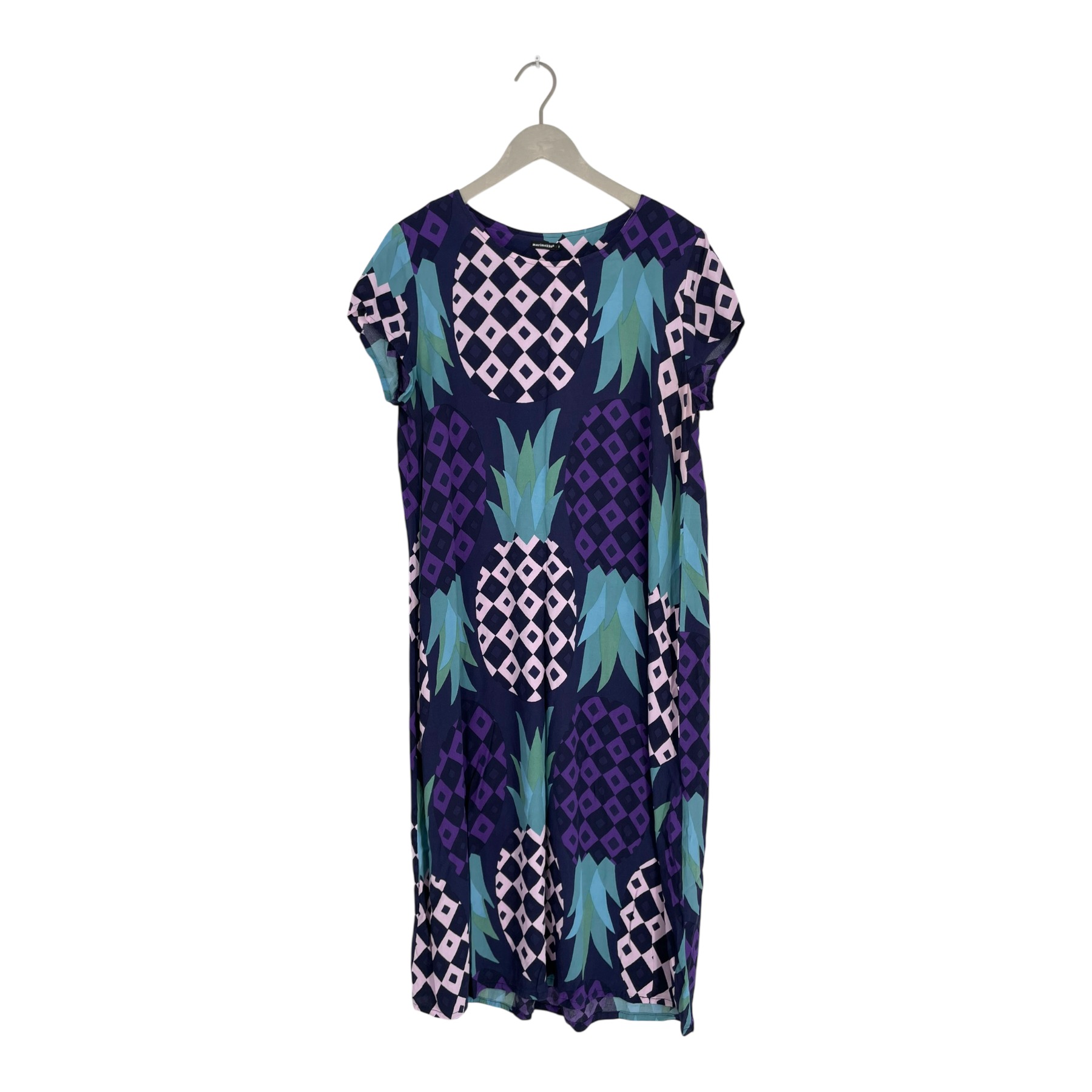 The Truba maxi dress in the Acapulco print. Short sleeves and straight fit. Laundry tag missing and very slight signs of wear on the armpits.
