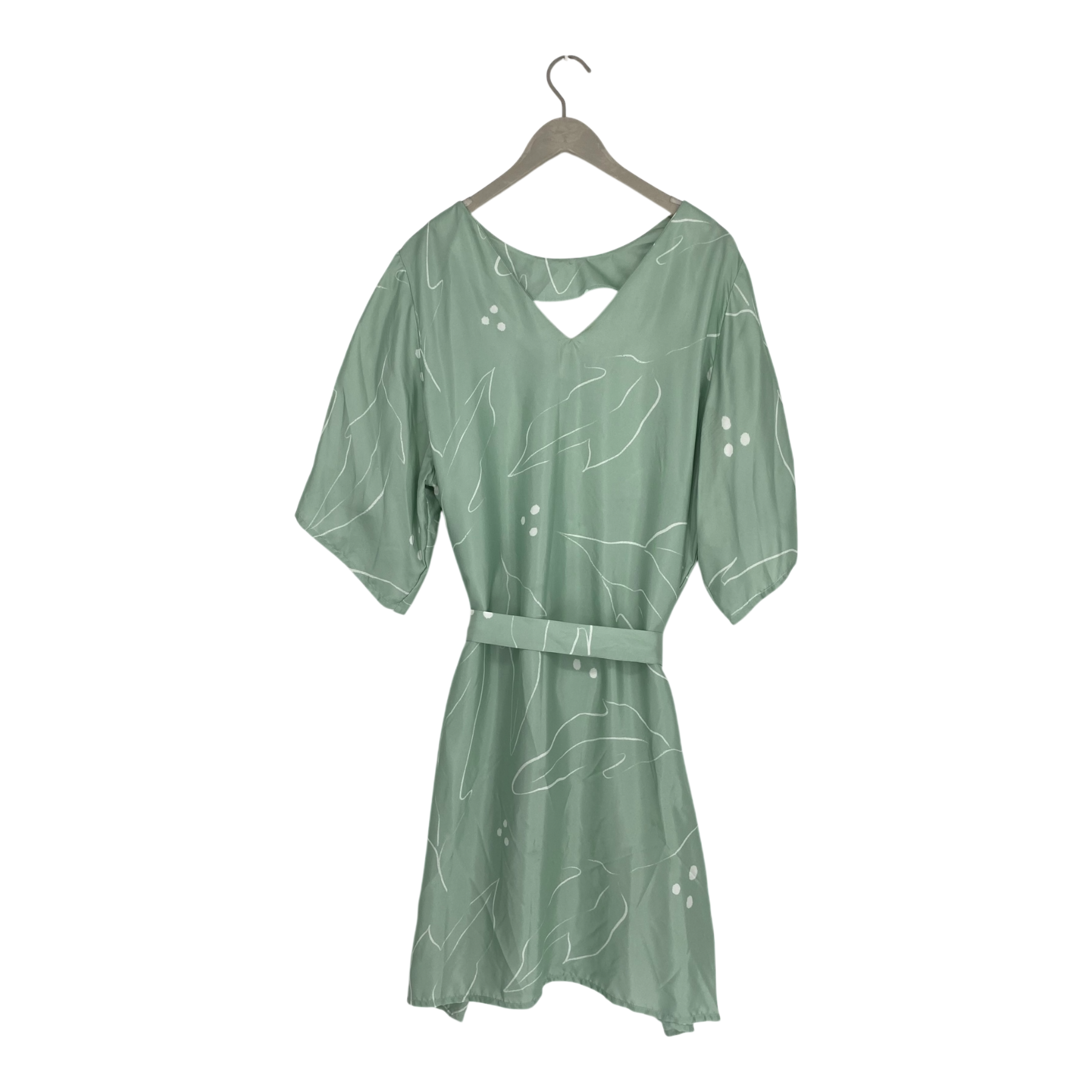 Uhana women's short sleeve silk Delight dress with a removable belt. The item has a stain on the collar.