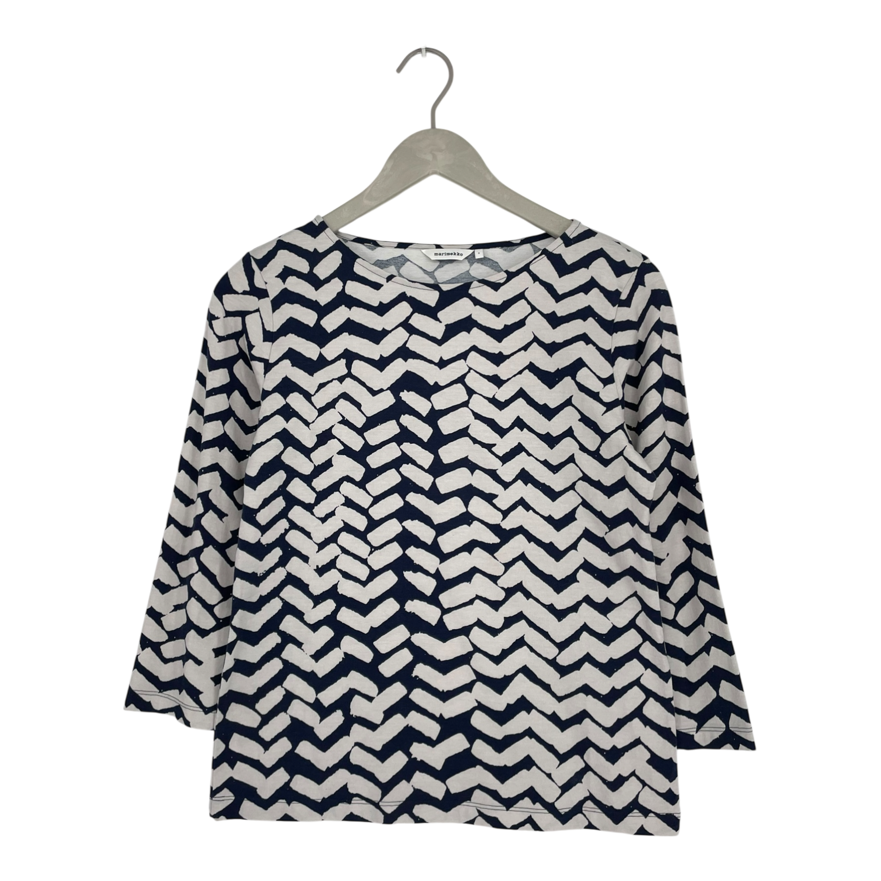 Marimekko long sleeve Ilma tricot shirt in the Iso sahalaitaraita print.