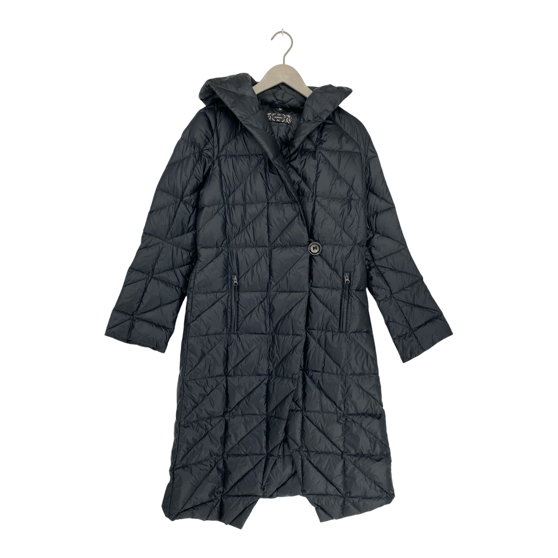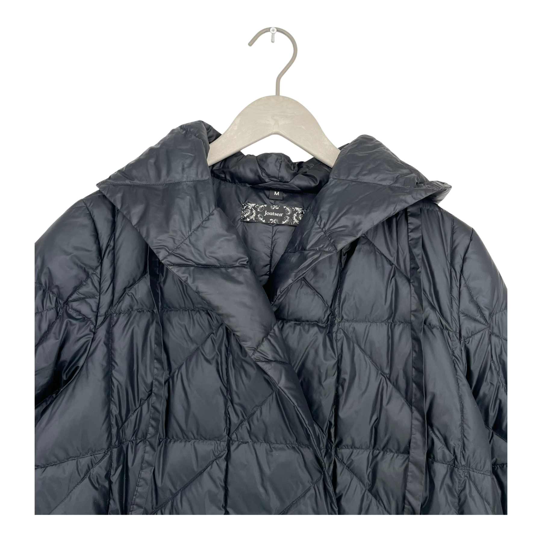 Joutsen Mercier jacket is a lightweight down jacket that has a triangle stitching. There is a snap button closure and a adjustable waist band in the back. The jacket has zipper pockets on the sides and the cuffs can be rolled for better fit.