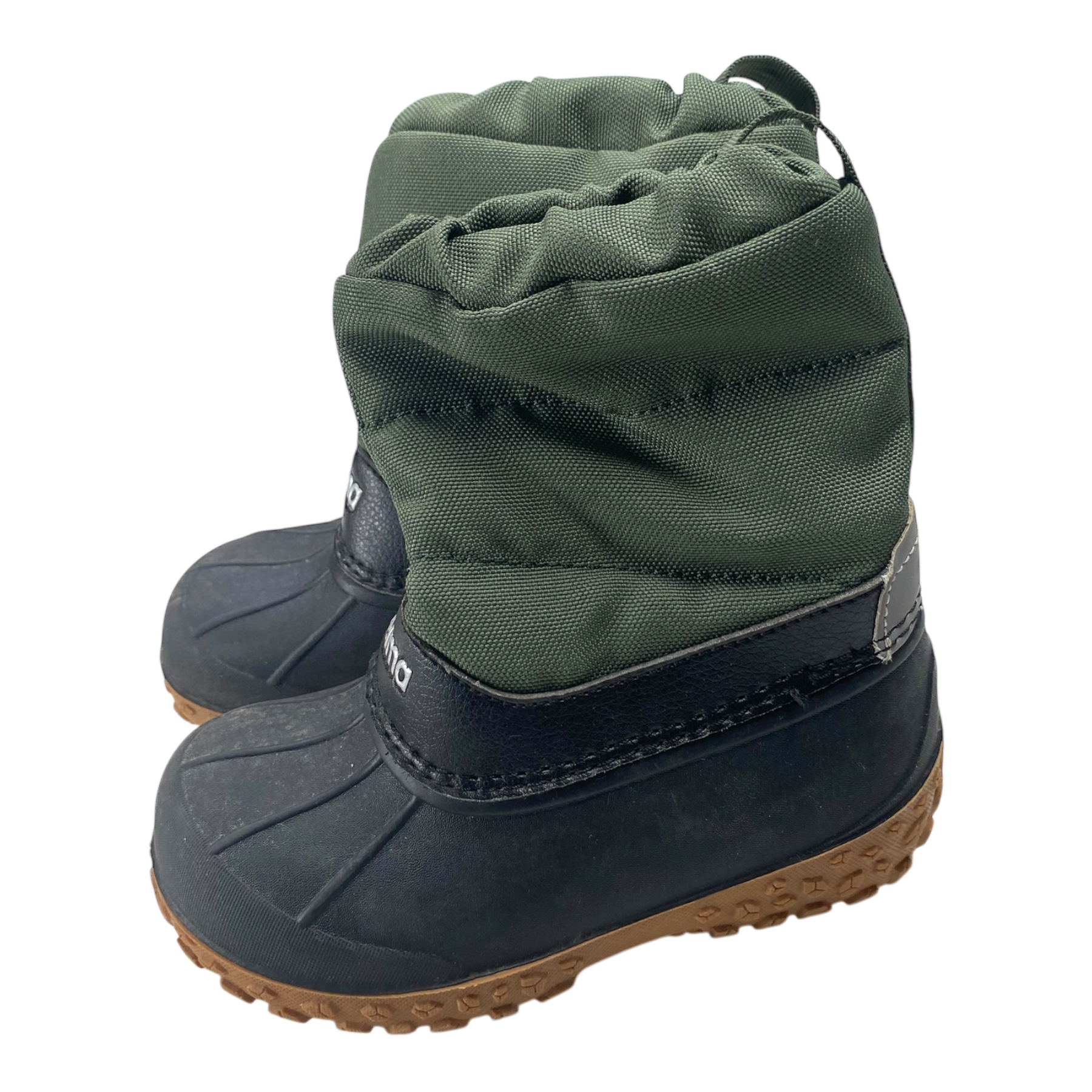 Reima Loskari kids winter duck boots has a waterproof galosh section in durable thermoplastic rubber. Protects from slush on wet days. The item has some signs of use.