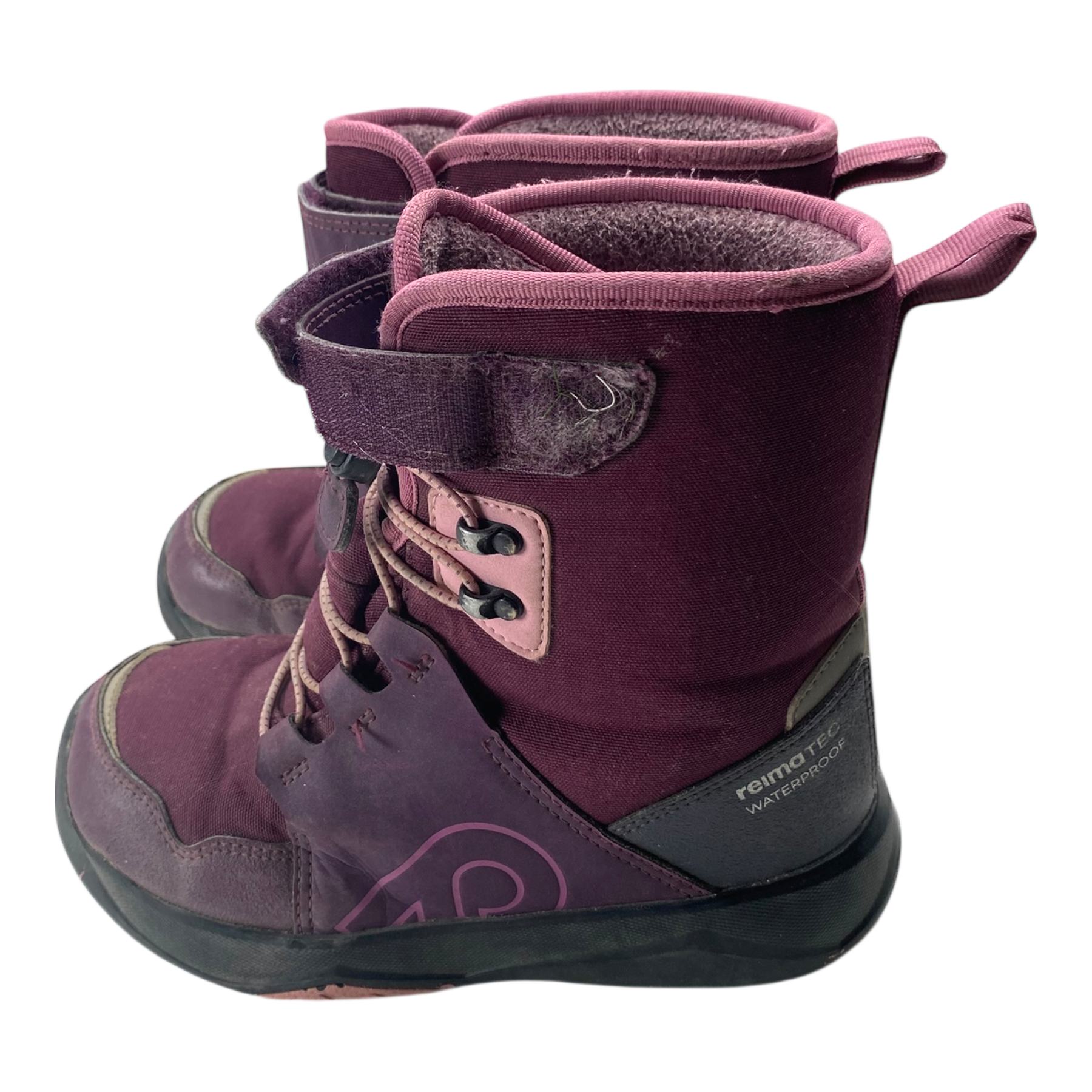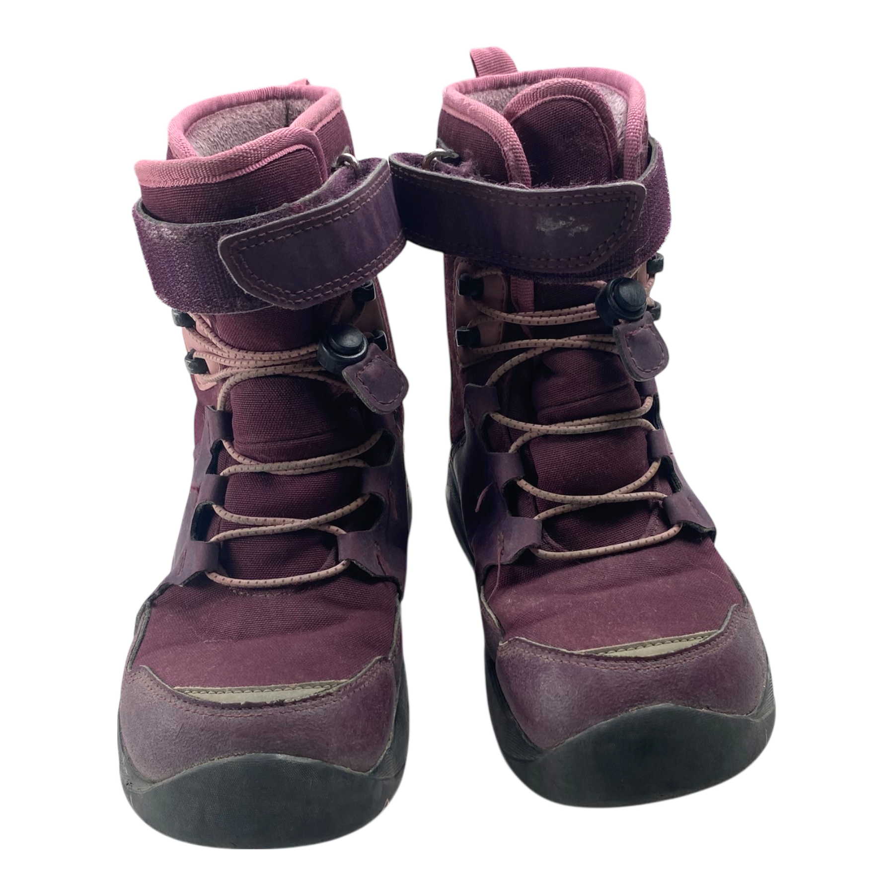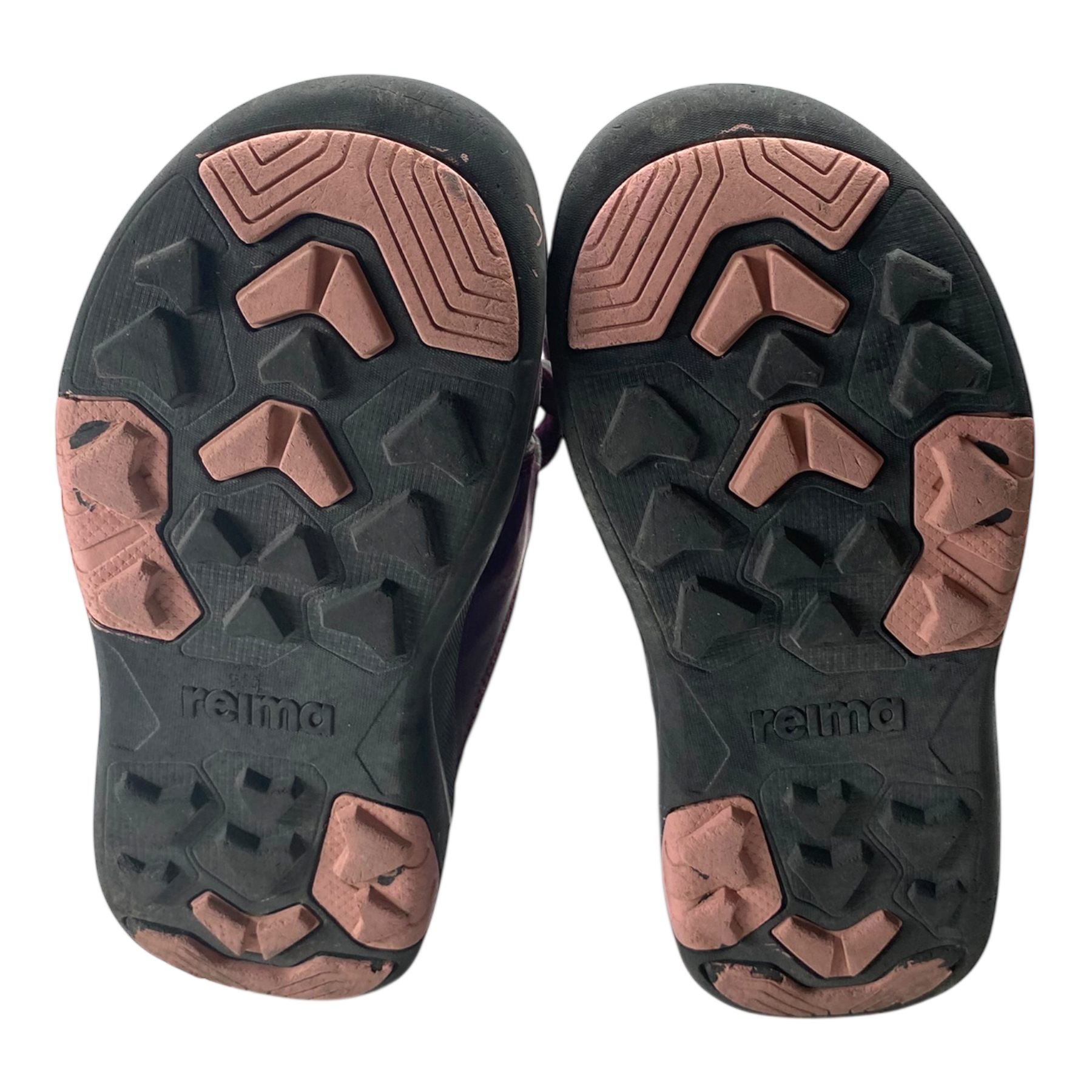 Reima talves winter shoes are originally waterproof. The flexible rubber outsoles gives a proper grip on surfaces. The fleece lining keeps little feet warm while the hook-and-loop strap ensure a snug and comfy fit. Seam-sealed inserts offer extra protection by preventing rain and slush from seeping in. The boots are 100% vegan and PFAS free and come with removable felt insoles. Reflective details deliver visibility.