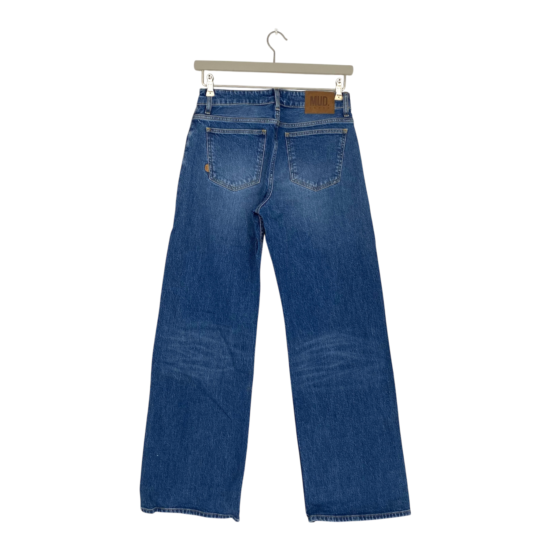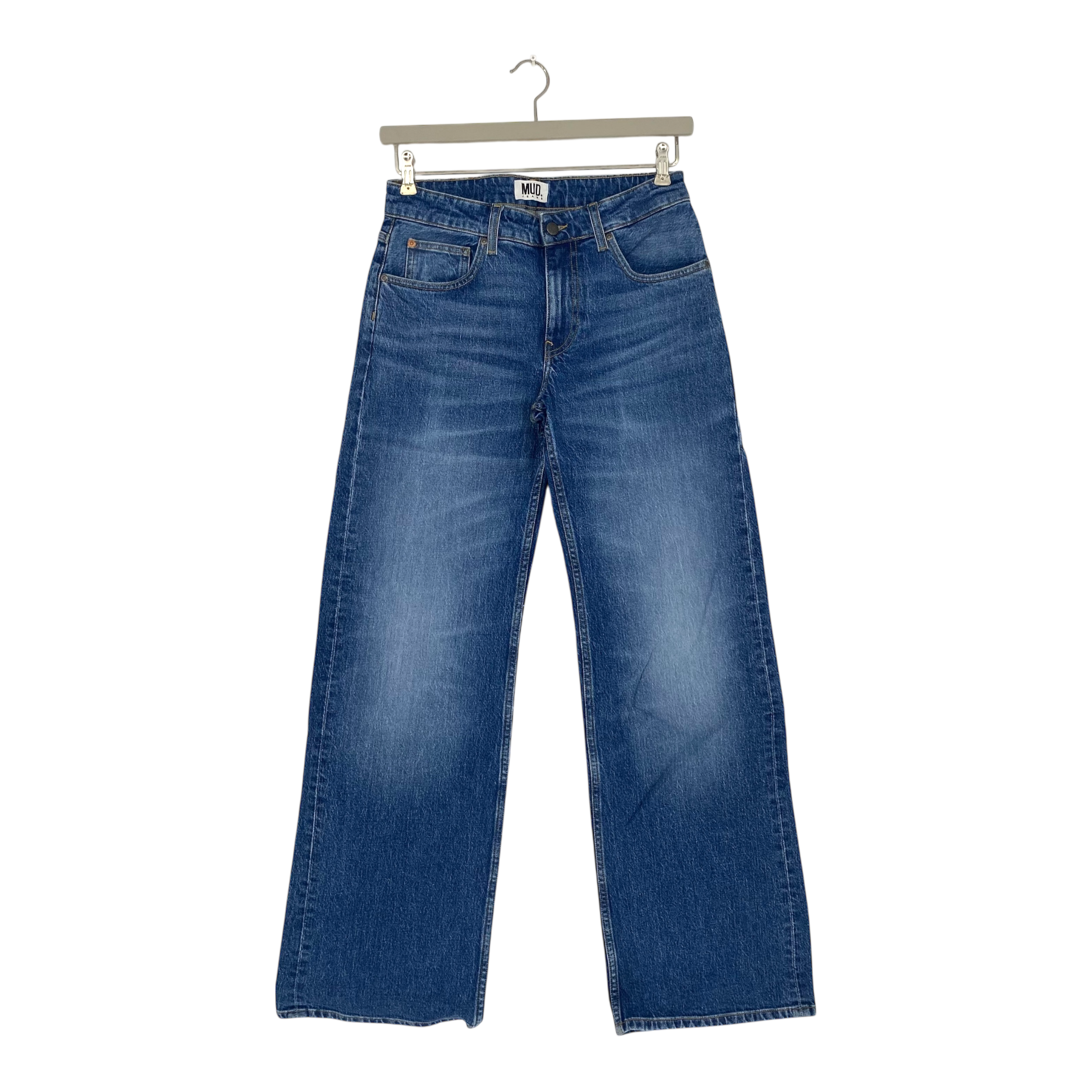 Mud Jeans Cleo Mid Relaxed jeans offer the perfect in-between look for those looking for something more than a straight, but not less than an ultra wide style. The casual but fashion forward fit is constructed of a slightly stretch denim composed of recycled and fresh cotton blended with lyocell to maximise the wearability and comfort of the Cleo. The style provides a flattering fit with plenty of room through the hips and thighs, giving you all-day comfort without sacrificing shape.