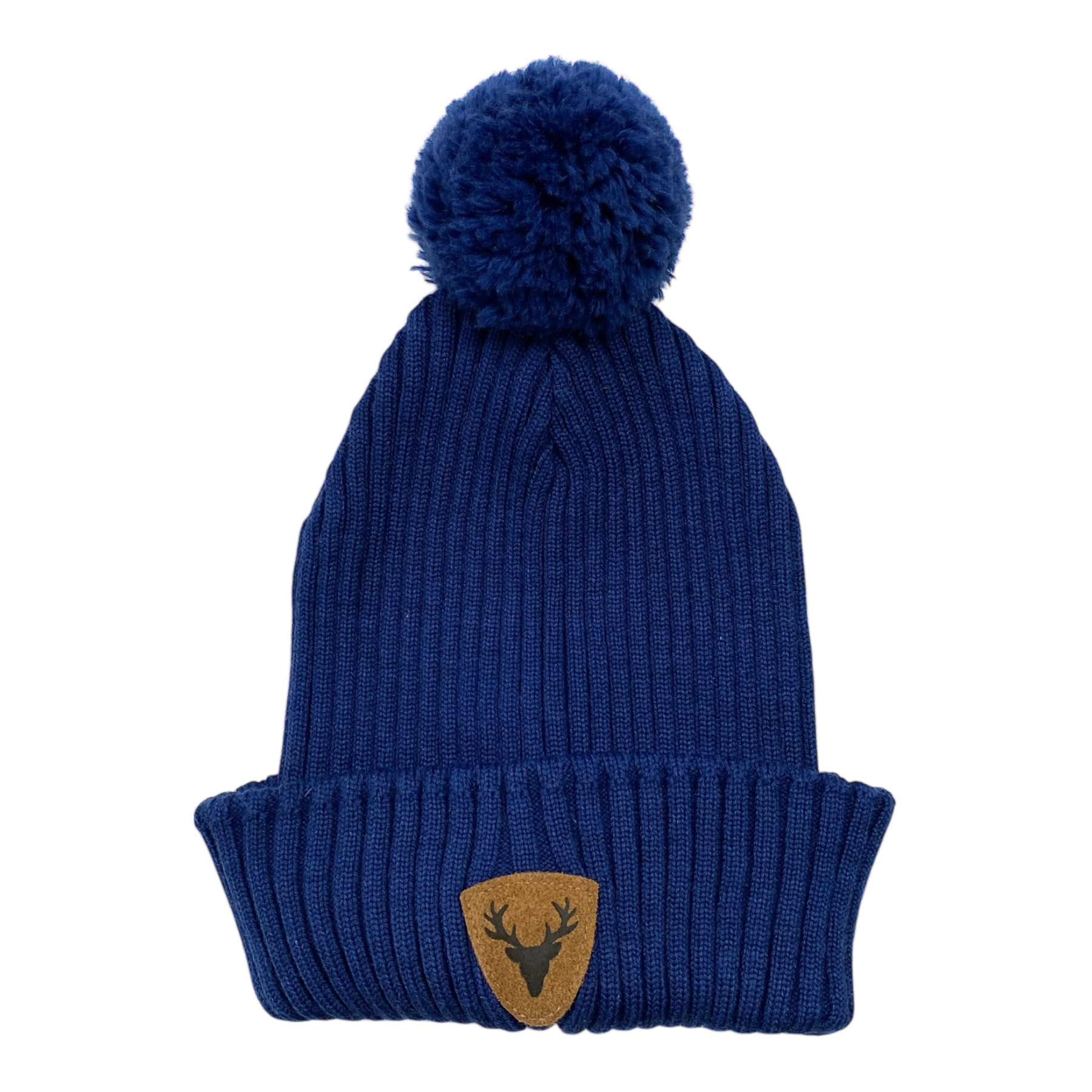 Superyellow junior pom merino beanie, navy blue | 50-54cm