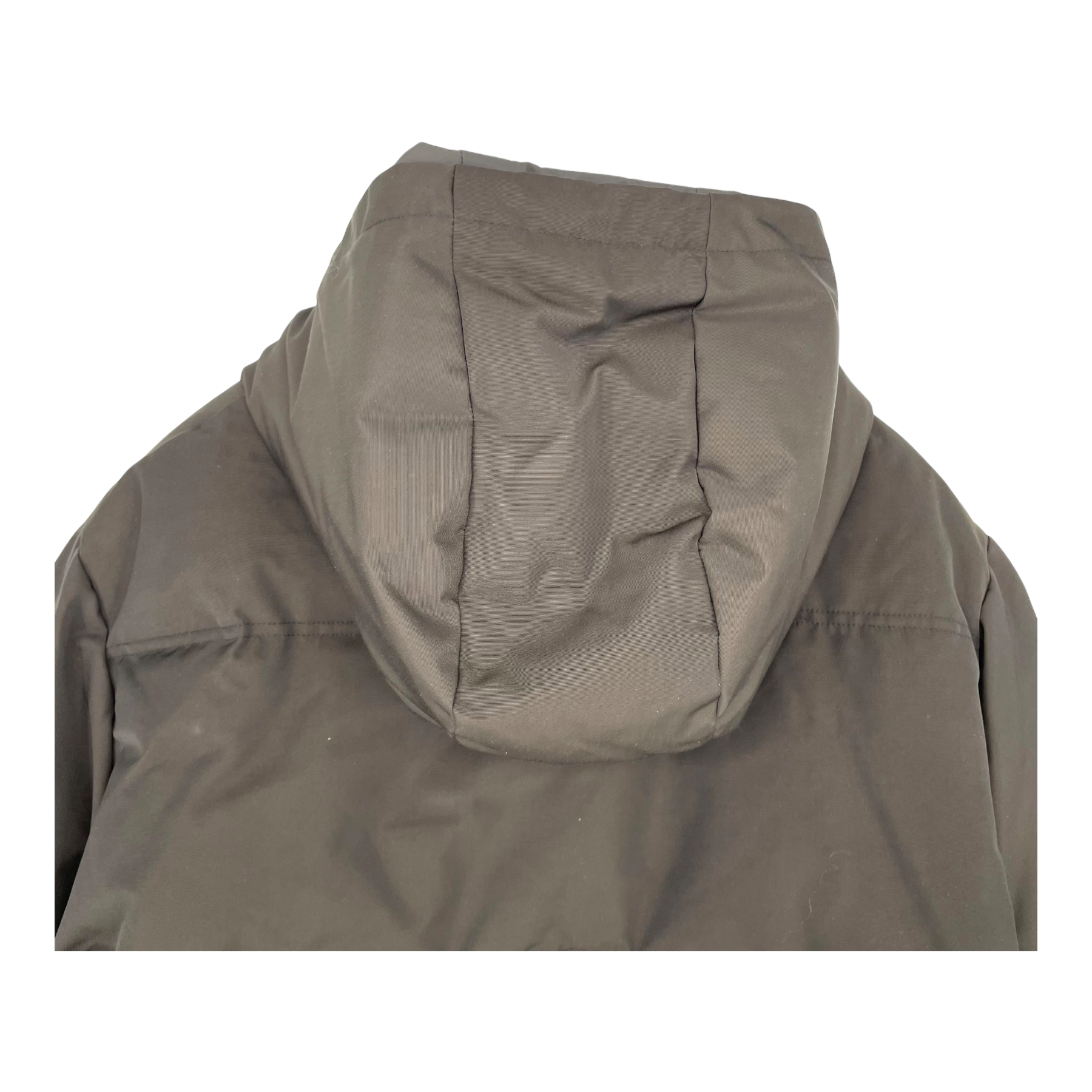 Embassy of Bricks and Logs Brookville parka with double hood, fleece lined pockets, and ribbed cuffs.