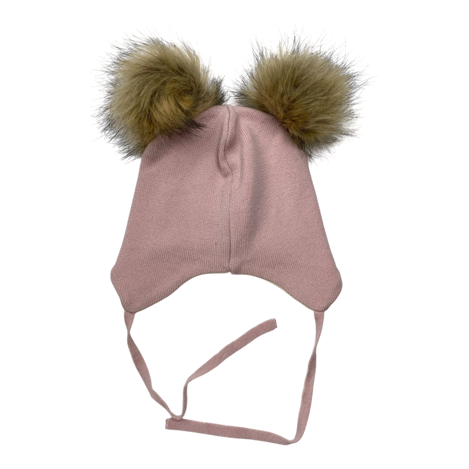 Gugguu merino furry 2 pom beanie, pink | 3-5y
