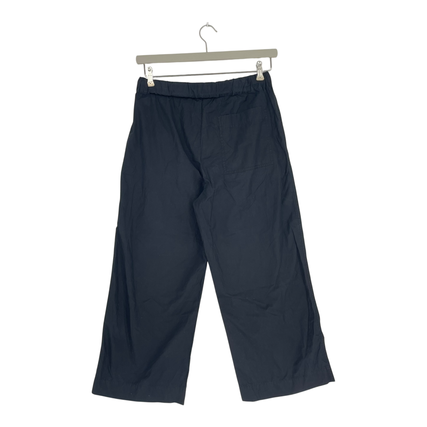 Arket belted trousers with an adjustable belt in the front and elasticated waistband. There is two pockets on the sides. Slightly  cropped culotte style fit with straight fit legs.
