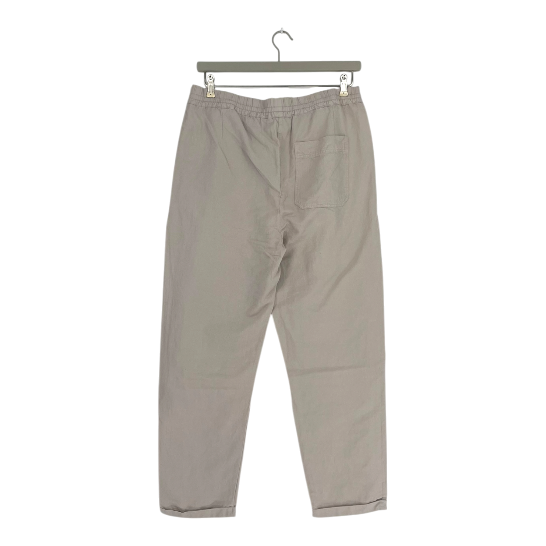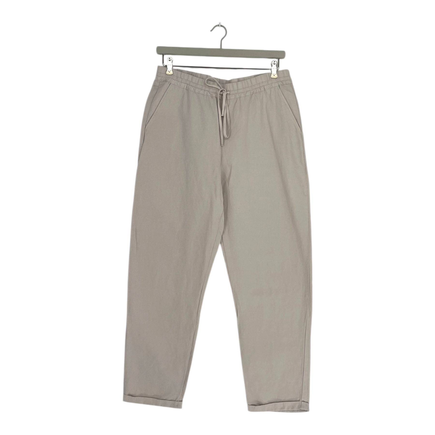 Armedangels Danyaa Lino relaxed-fit pants featuring an elastic waistband with drawstring closure. These comfortable pants have a tapered silhouette with front pockets and cuffed hems. The sustainable fabric blend offers a soft, breathable feel perfect for casual wear.