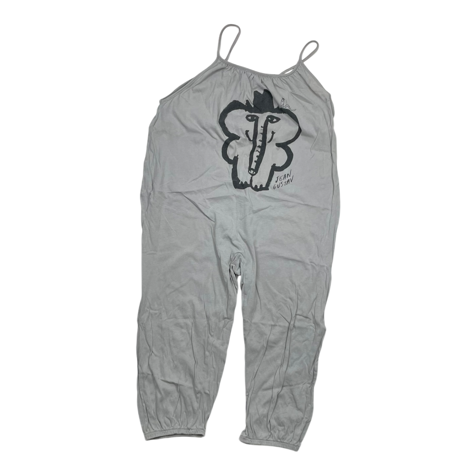 Bobo Choses sleeveless tricot jumpsuit in grey with a elephant print.