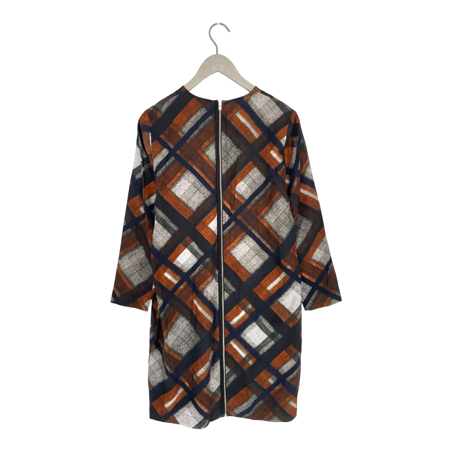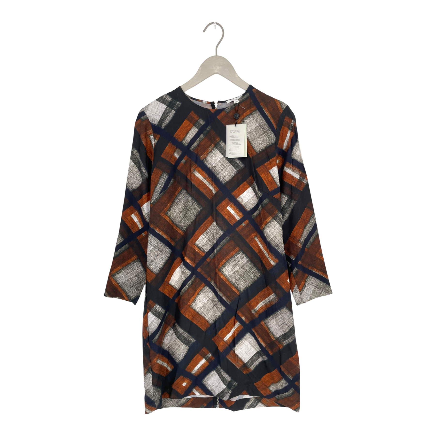 Dagmar Laleh dress in Fudge check print. The dress has a long sleeves and long zipper on the back