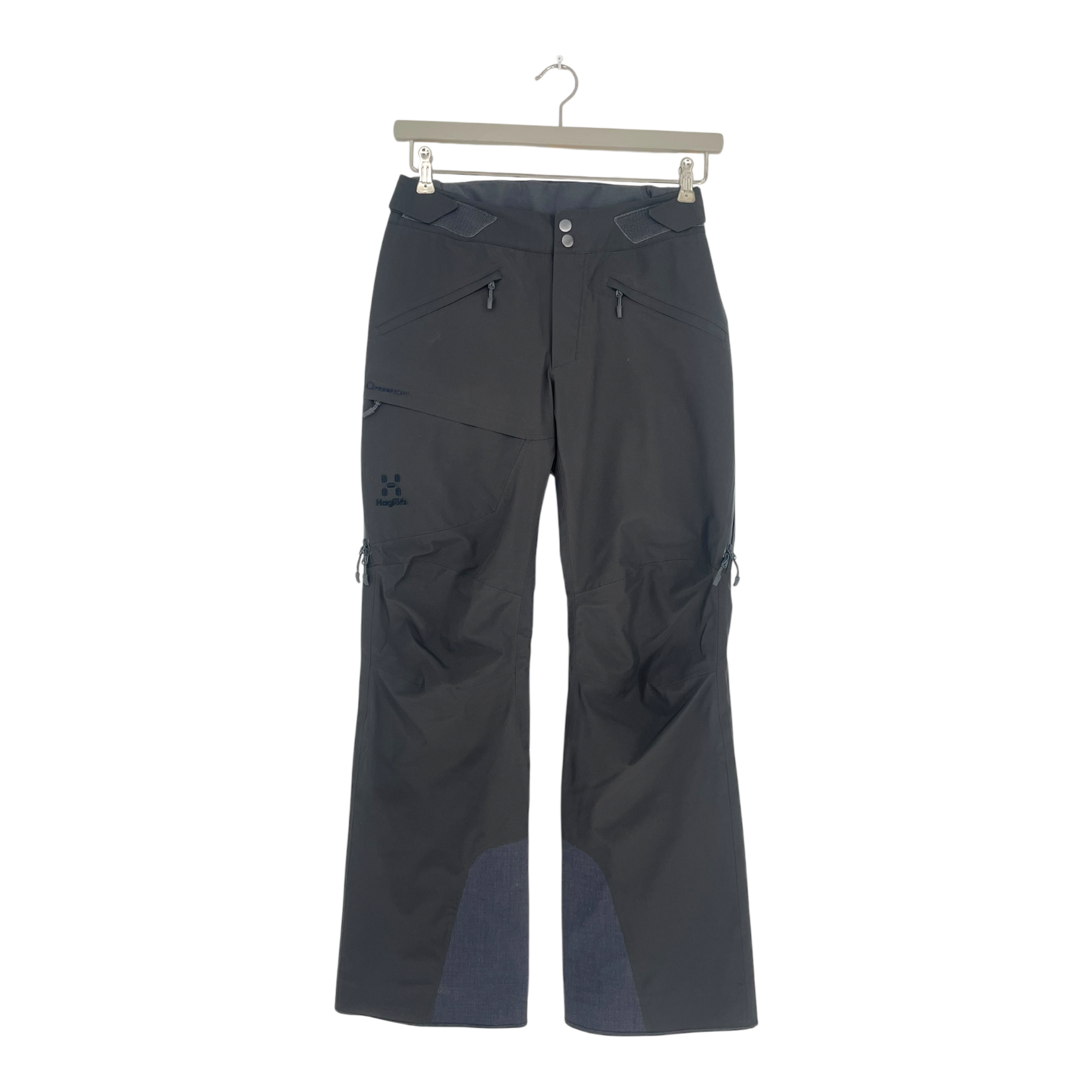 The Haglöfs NIva pants - Developed and designed with all-mountain skiing in mind: includes reinforced insteps, ventilation and snow gaiters Fluorocarbon free DWR-treated surface Ventilation zippers at sides Two hand pockets and one thigh pocket, all zipped Internal lower leg gaiters with elasticated rubber grip Detachable suspenders Articulated knees for easy movement